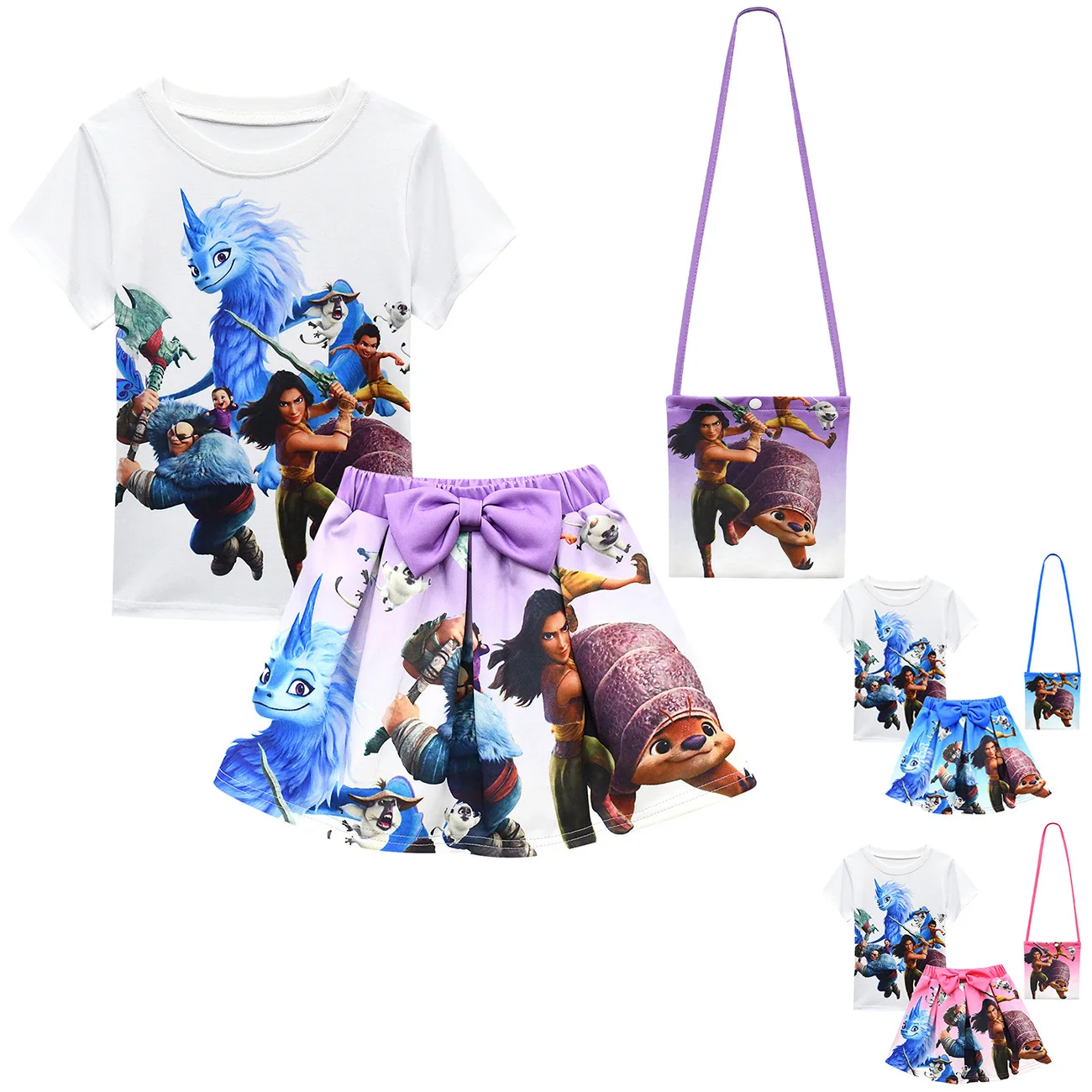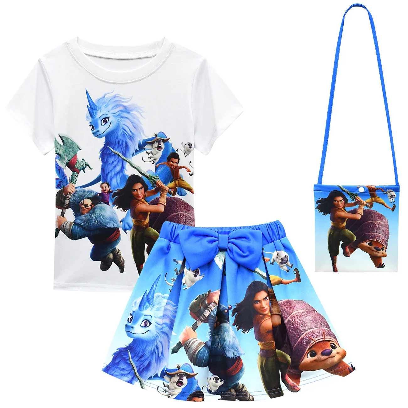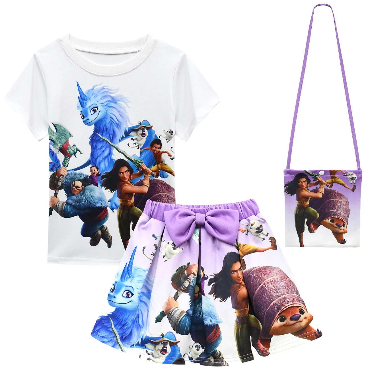 Летняя одежда для маленьких девочек, 3 шт.компл., повседневный костюм для малышей, детское платье Raya и The Last Dragon, 3 цвета, костюм для детей
