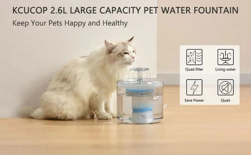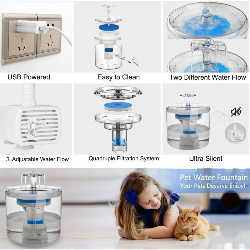 2.6L автоматический водный фонтан для кошек, дозатор для воды для собак, прозрачный фильтр, поилка, Ультра тихий Электрический питательный питатель