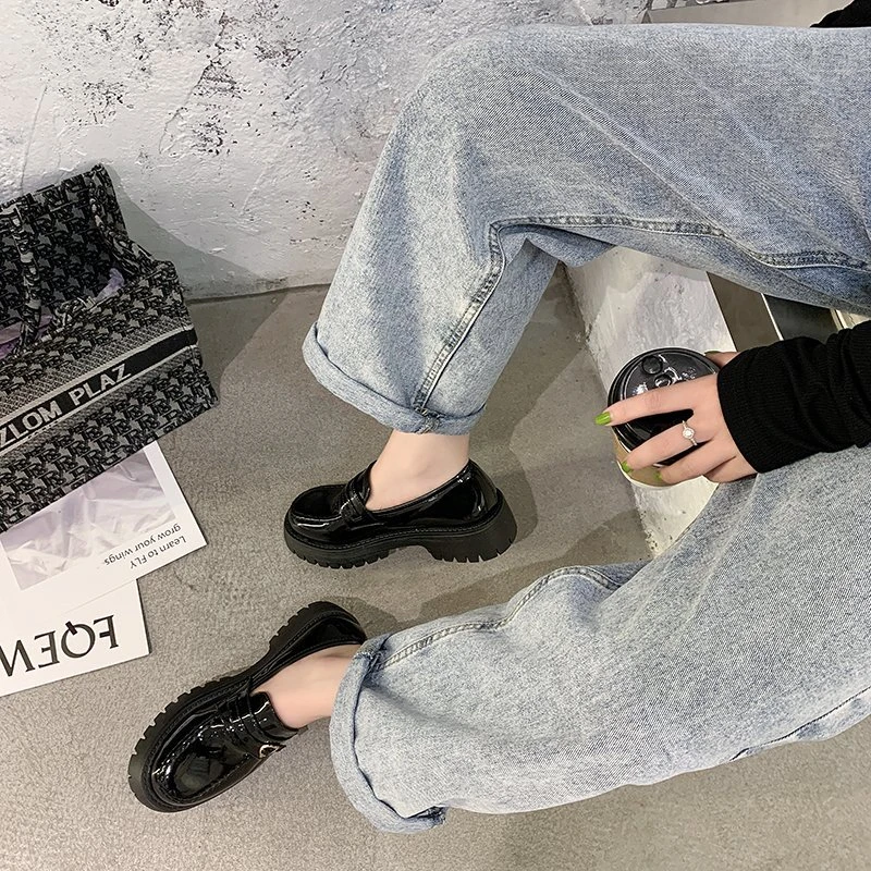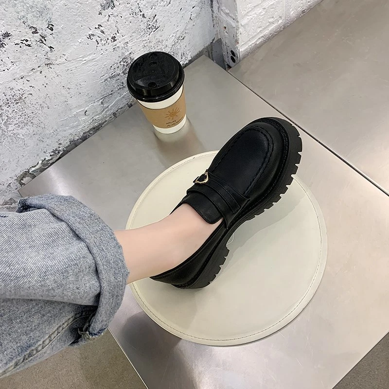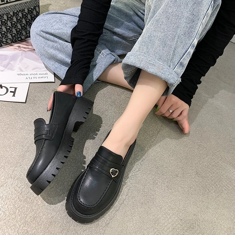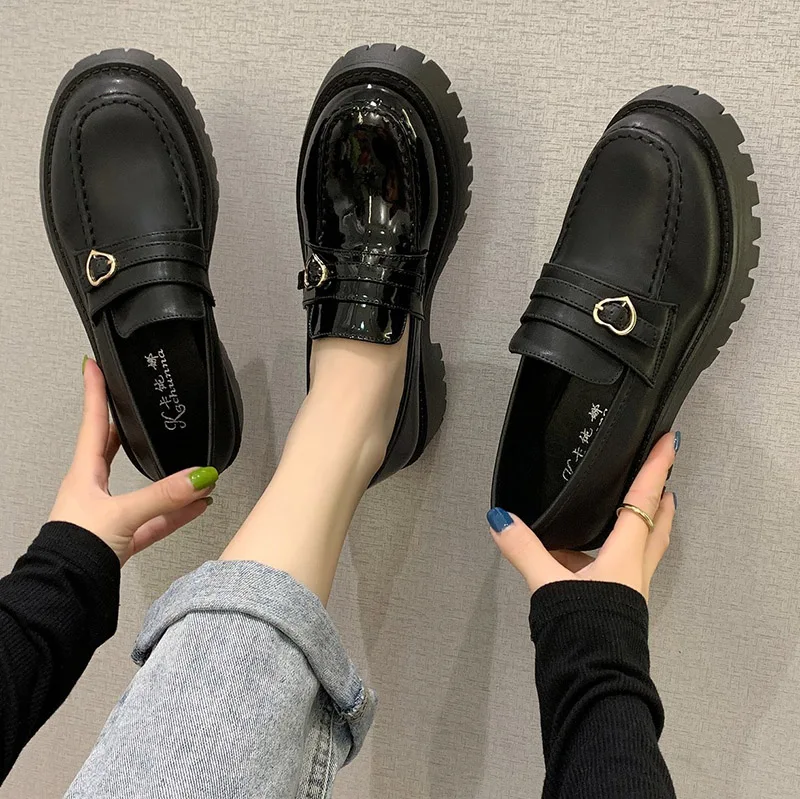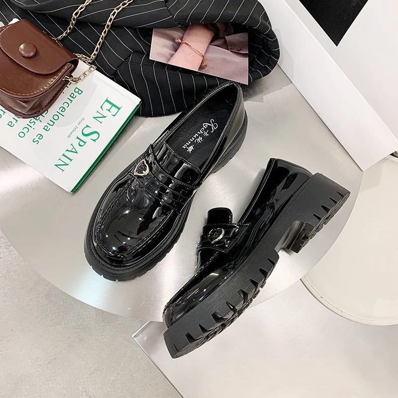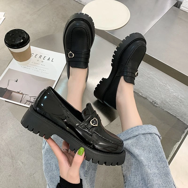 Туфли-оксфорды женские из лакированной кожи, на платформе, толстая подошва, без застежки, лоферы с сердечками, топ-сайдеры, 9298N, осень
