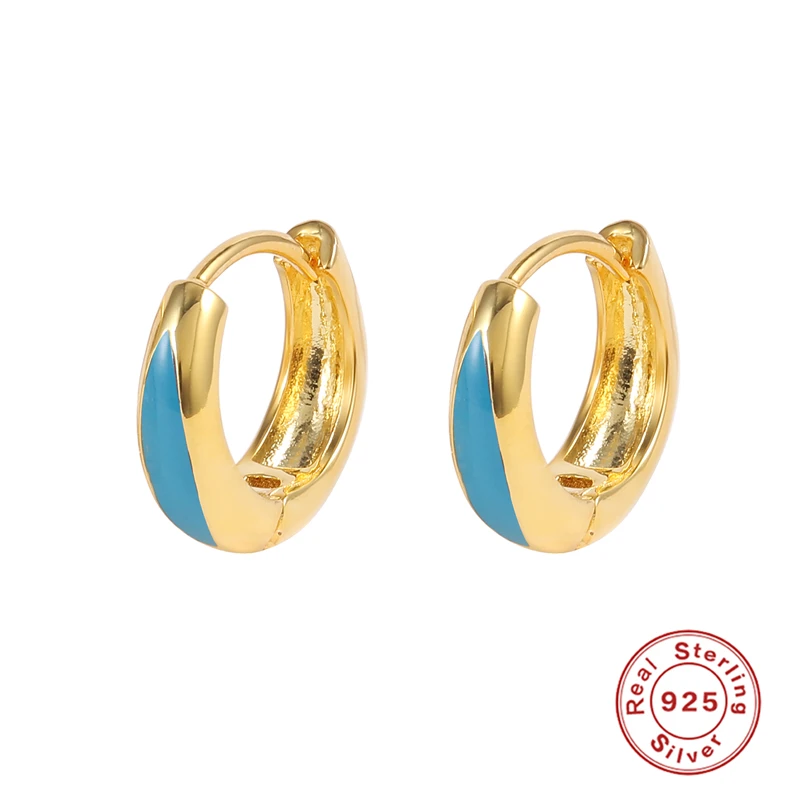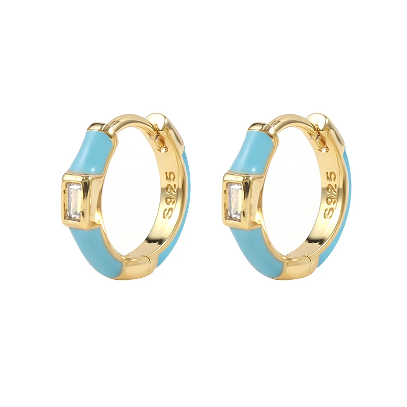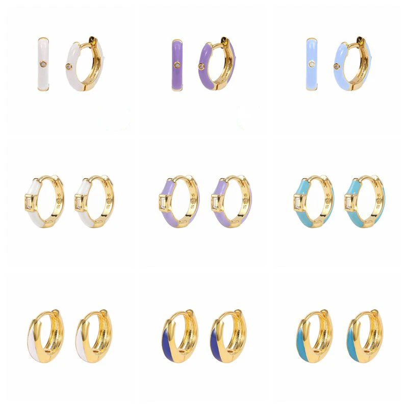 Женские маленькие серьги-кольца MC, серебряные, фиолетовыесиние эмалевые серьги-кольца с бриллиантами, корейские цирконы, капающие масляные серьги для пирсинга, 925 пробы