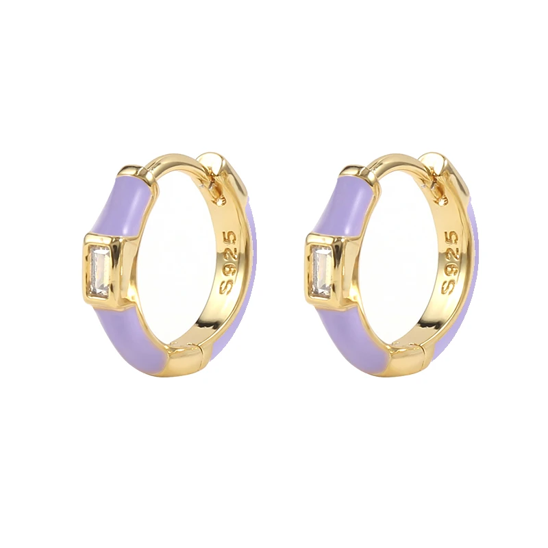 Женские маленькие серьги-кольца MC, серебро 925 пробы, фиолетовая/синяя эмаль, бриллианты, корейские цирконы, капающие масляные серьги для пирсинга