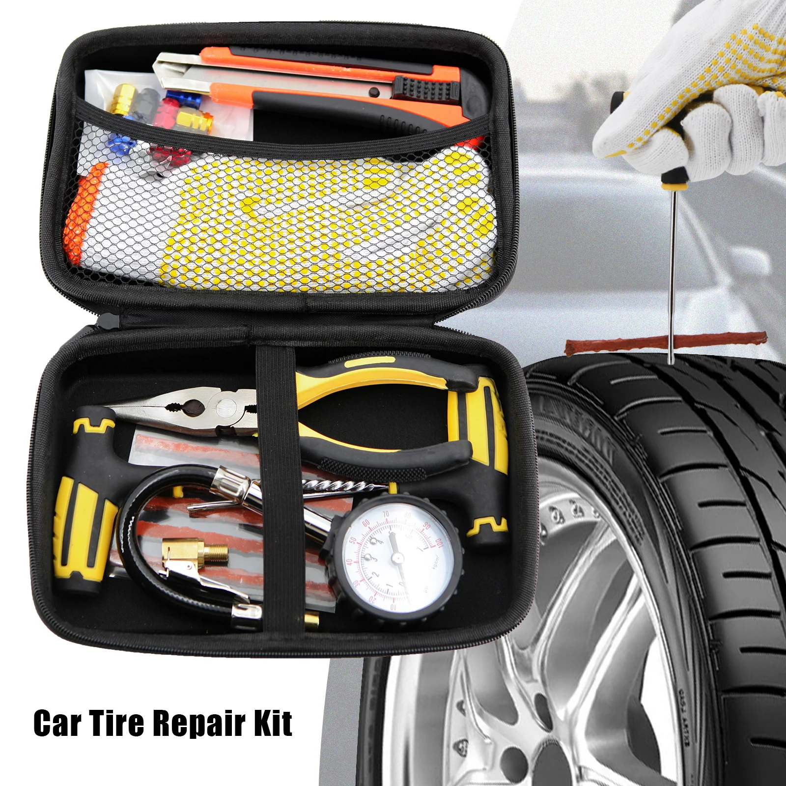 Набор инструментов для ремонта автомобильных шин с чехлом для хранения из этиленвинилацетата, набор инструментов для заглушки для прокола автомобиля, для гаража, игольчатые плоскогубцы, автомобильные аксессуары