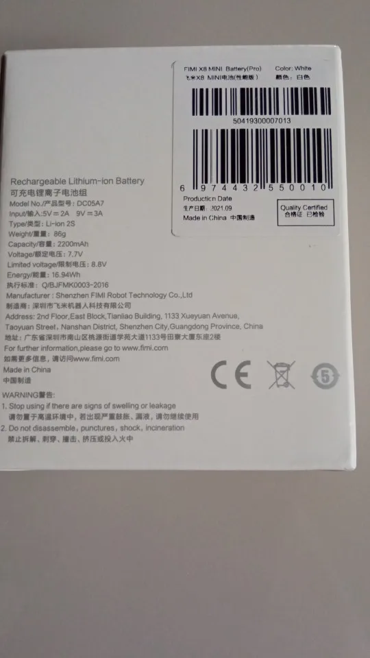 Аксессуары для дрона FIMI X8 Mini Lipo-Battery RC, 2400 мАч, переза...