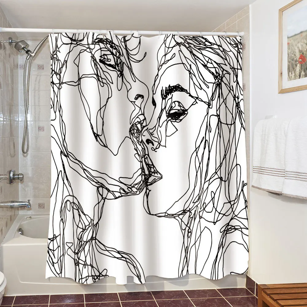 Геометрическая занавеска для душа с изображением персонажа, занавеска для ванной s, занавеска для ванной с крючками для купания, декор для свадебного дома