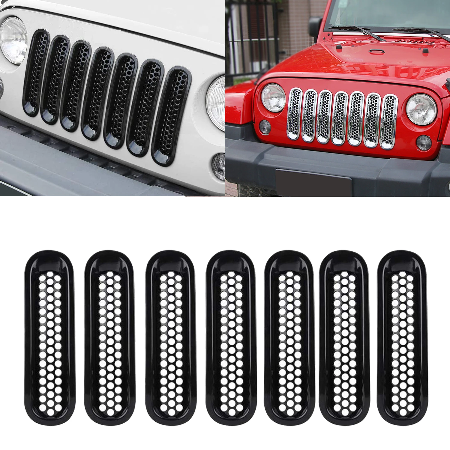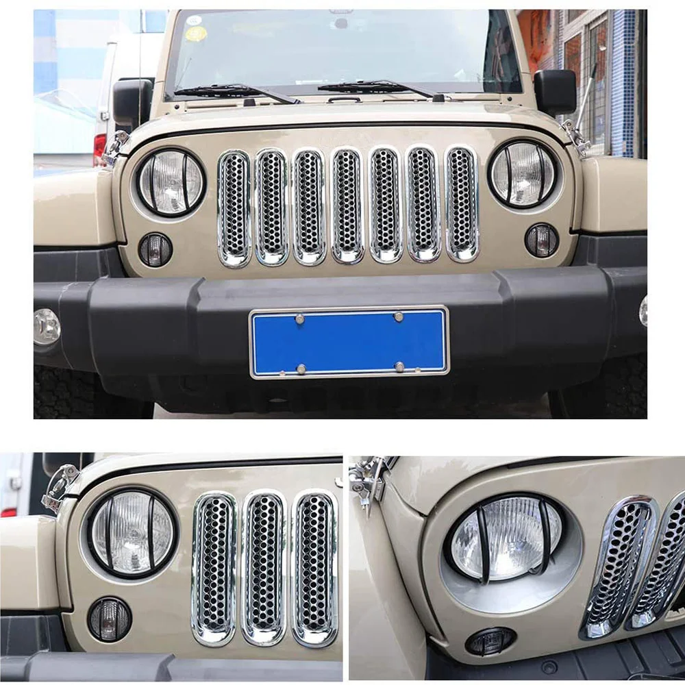 7 шт./компл. передняя вставка для автомобиля сетка решетка крышка Черный Хром Авто ABS Стайлинг наклейка отделка для Jeep Wrangler JK 2007-2017