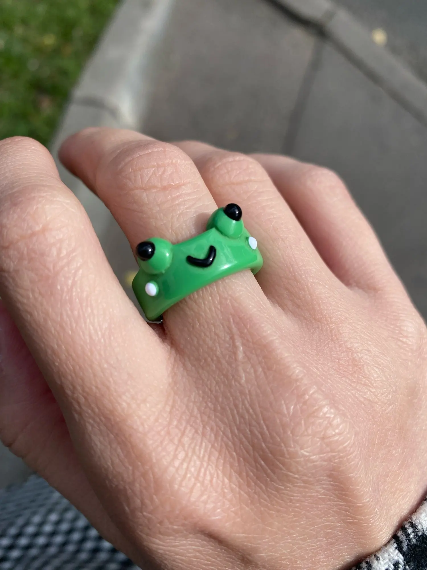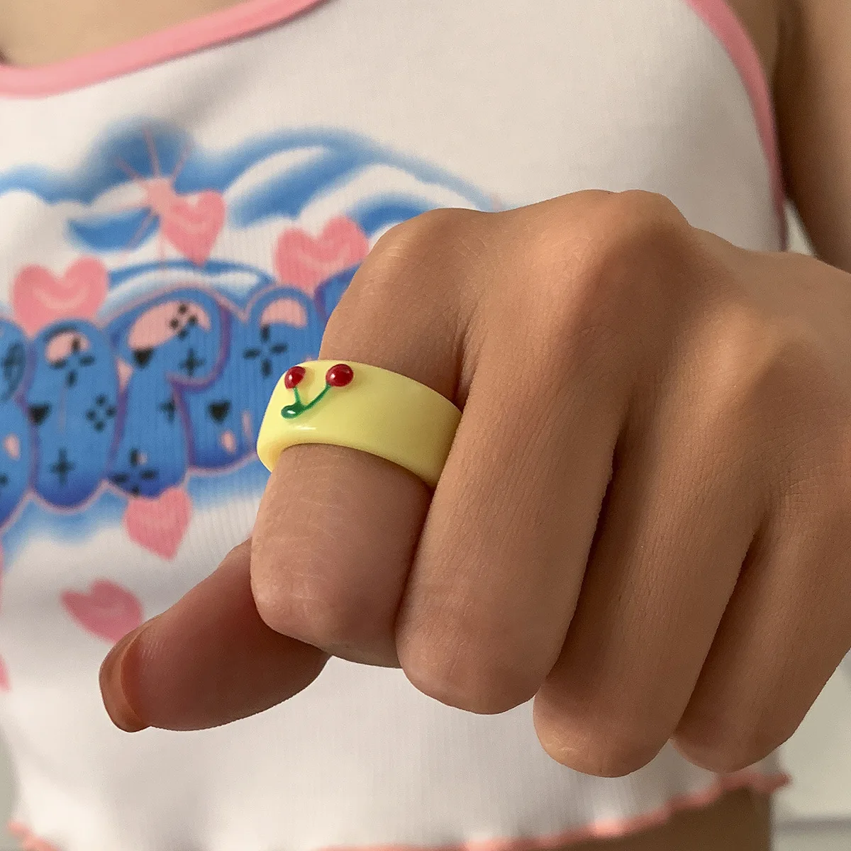 HZ 2021 INS красивые красочные кольца из смолы с рисунком лягушки цыпленка вишни геометрические круглые кольца с фруктами и животными для женщин и девушек повседневные ювелирные изделия