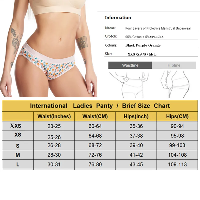 Женское нижнее белье с принтом физиологии, 4-слойные антибактериаль...