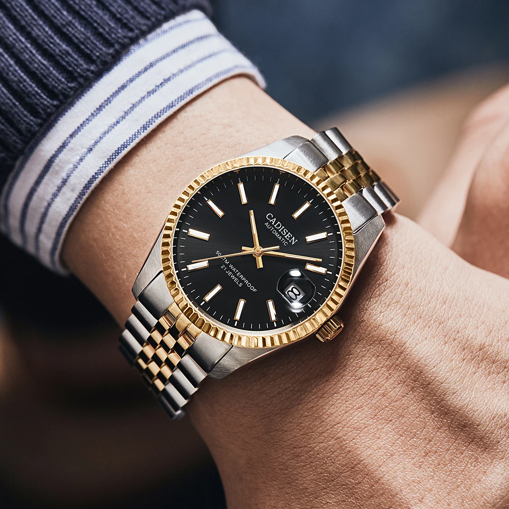 Мужские механические часы от ведущего бренда CADISEN, Роскошные автоматические часы, деловые водонепроницаемые часы из нержавеющей стали, мужские часы relogio masculino