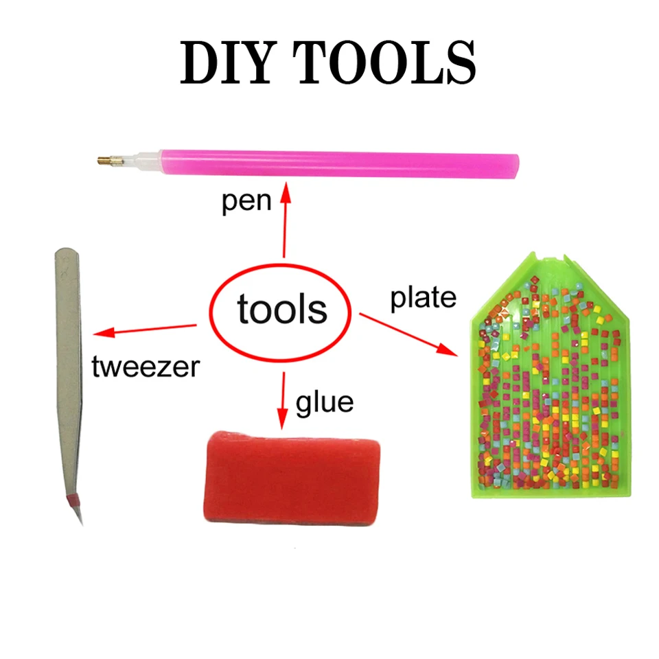 Посылка включает в себя: полностью сверлильный алмаз, ткань с принтом, инструменты