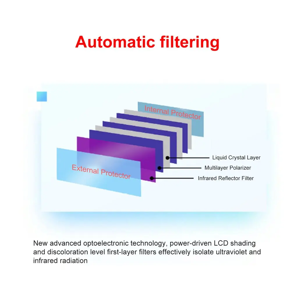 Описание:1. Это автоматическая переменная фотоэлектрическая защитная крышка.2. С передней и задней частью, функция регулировки размера в четыре стороны, Гибкая регулировка, высокая плотность губки пота на лбу, более удобно носить.
