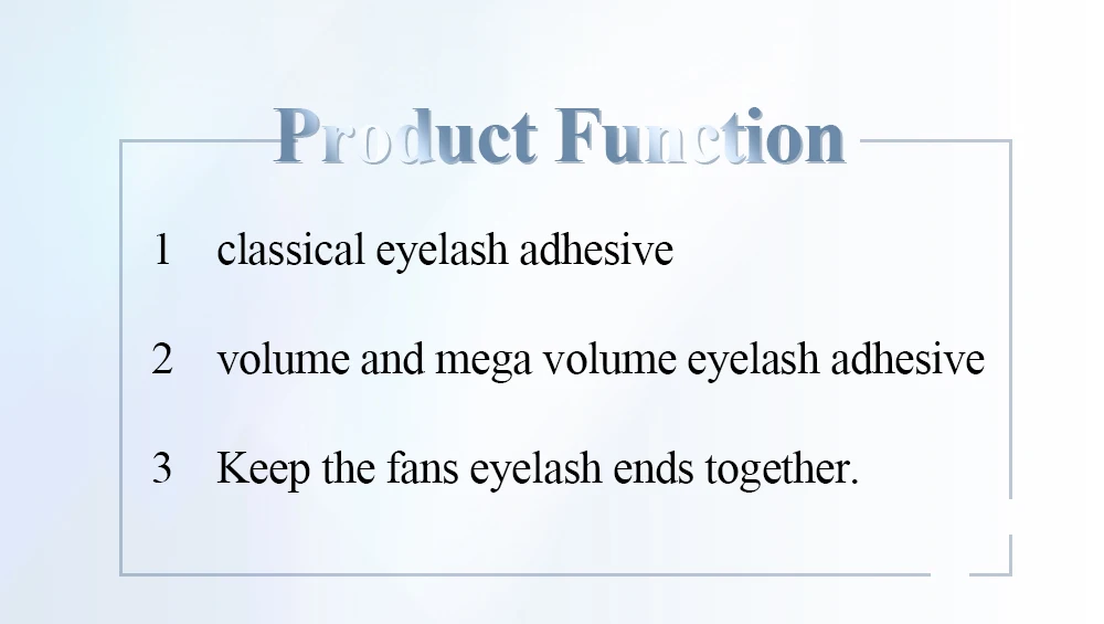 1, быстрая сушка только для 0.5s2, мягкий и без раздражения3, высокая прочность и не легко быть хрупким для удлиненных ресниц4, удерживайте веерки, ресницы плотно не садятся5, длительное время хранения до 30-40 дней