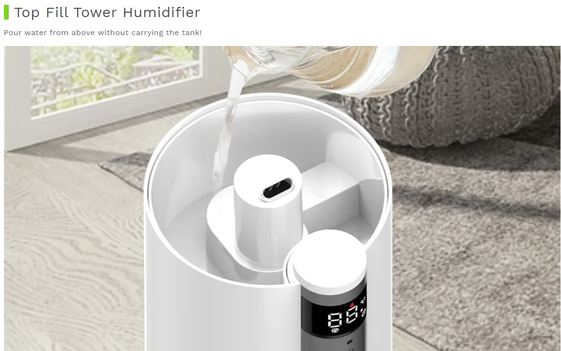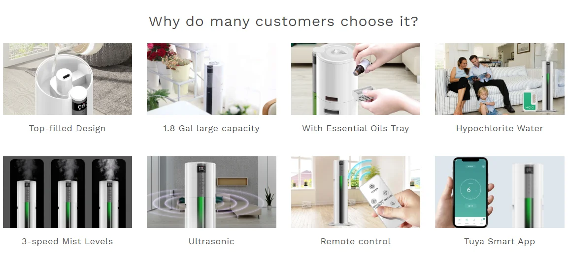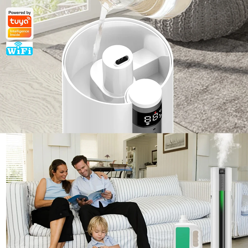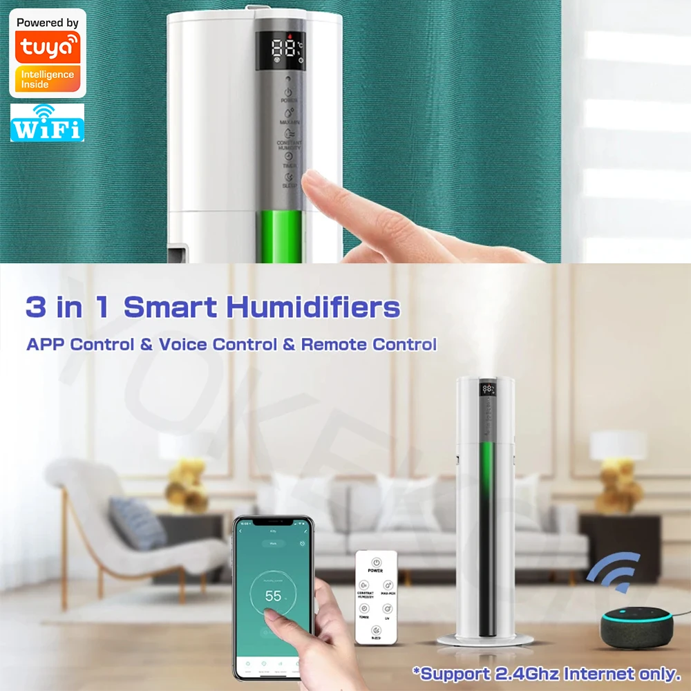 Ультразвуковой увлажнитель WiFi1. Номинальная мощность: 28 Вт2. Емкость резервуара для воды: 7.0л3. Максимальное испарение: 280 мл/ч4. Режим управления: Интеллектуальный (пульт дистанционного управления)5. Беспроводной Тип: 2,4 ГГц, протокол: IEEE 802.11b/g/n6. Размер продукта: 250*250*680 мм7. Работает с Google Home/Alexa Echo8. Шум: ≤ 35 дБ