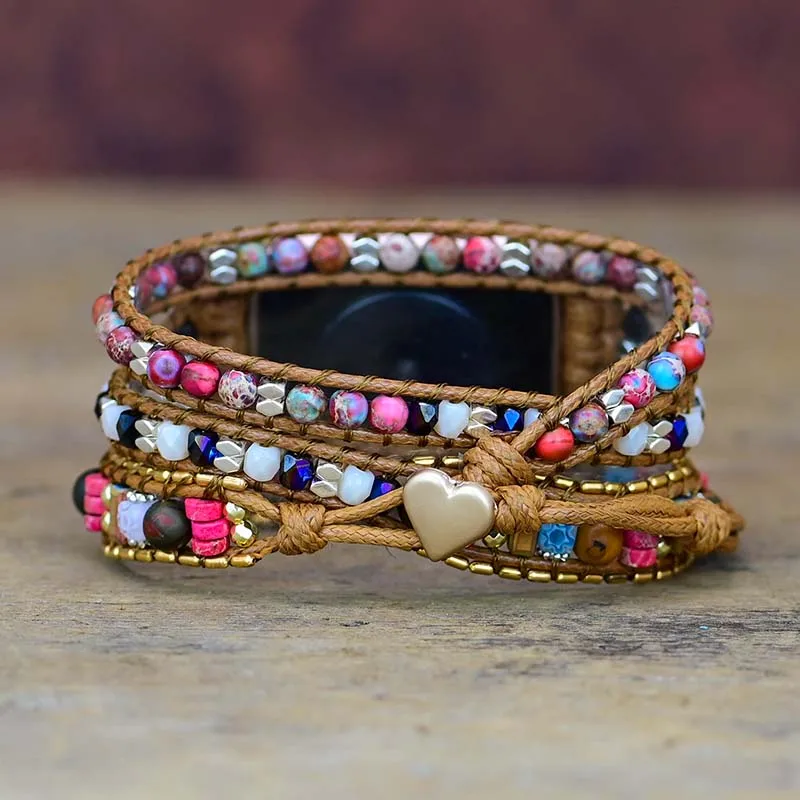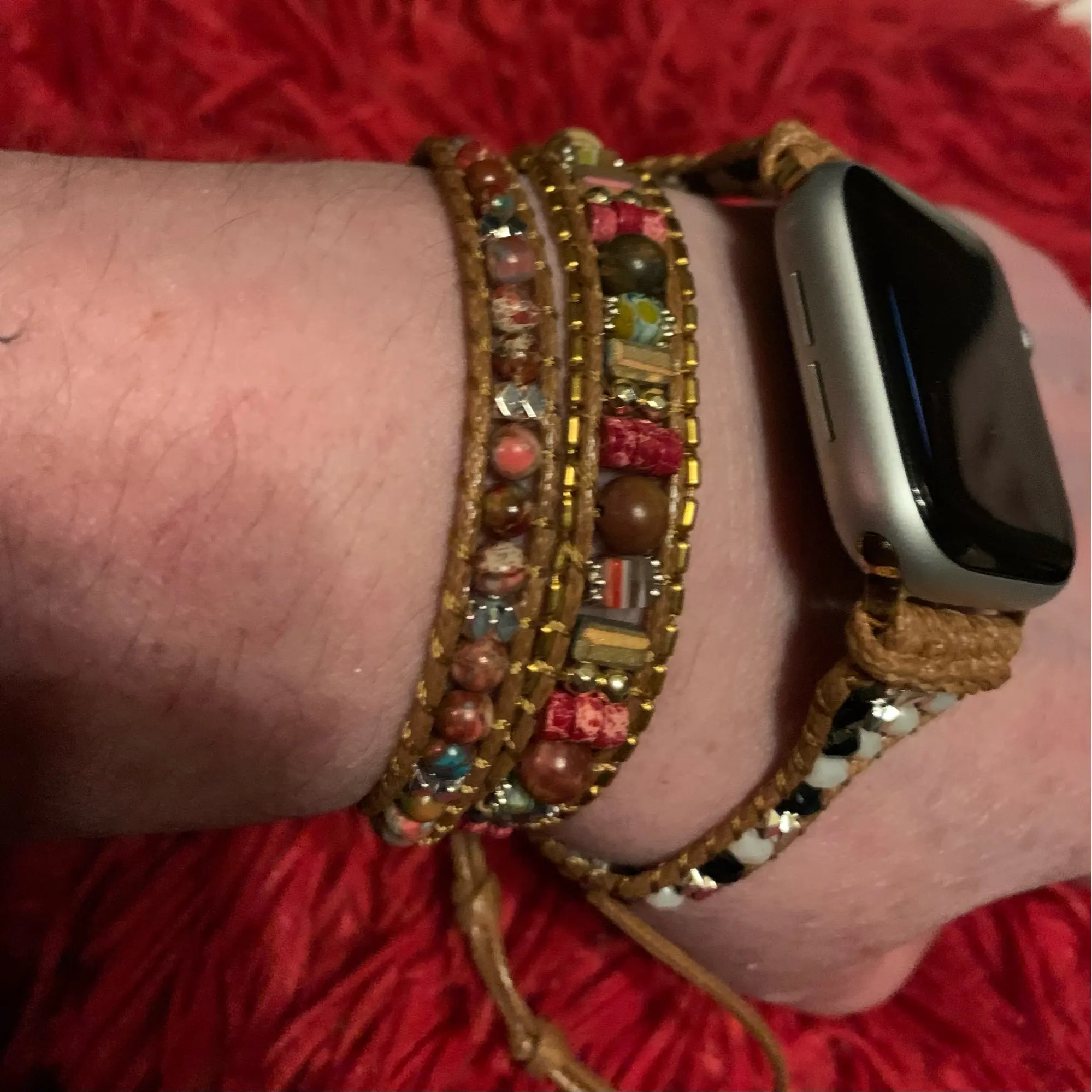 Браслет для Apple Watch, с натуральным камнем, в стиле бохо, браслет из восковой верёвки год, с 3 ремешками, подарок для женщин