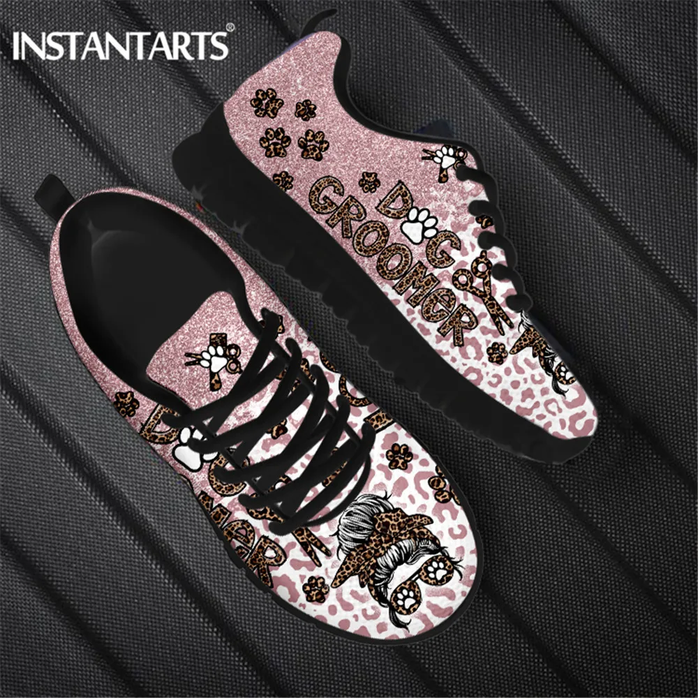 Женские кроссовки на плоской подошве INSTANTARTS, легкие кроссовки леопардового и розового цвета, со шнуровкой для собак