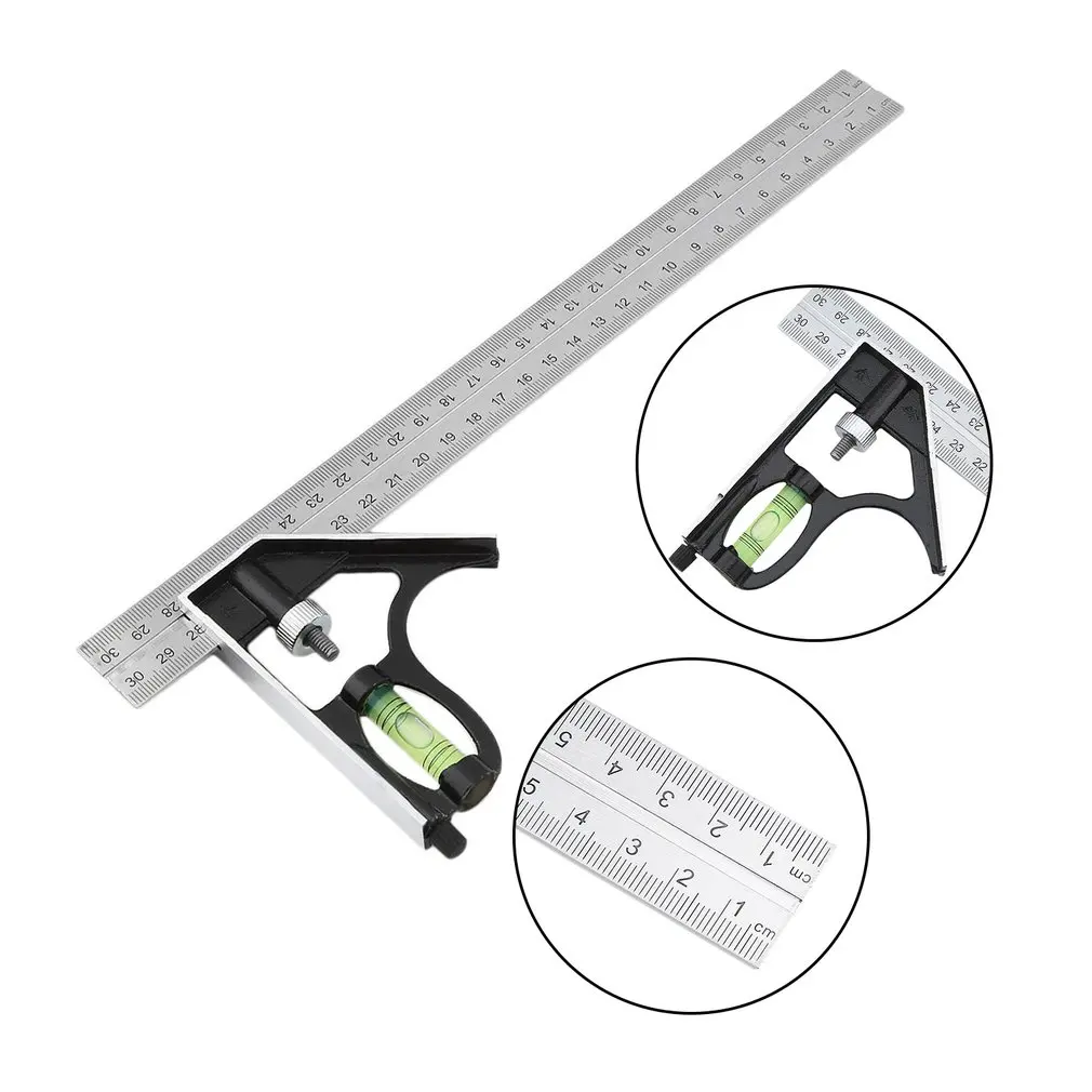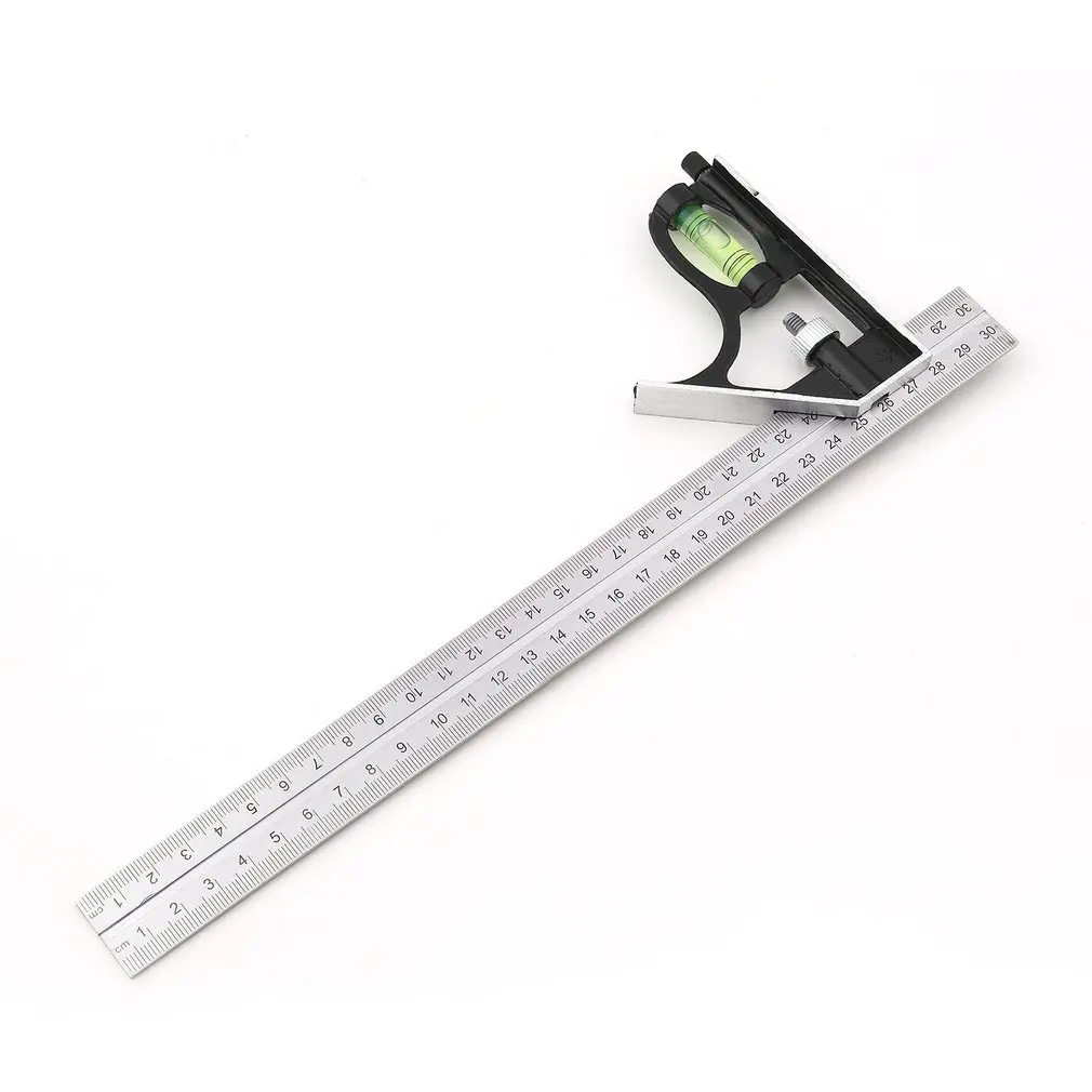 Набор квадратных линейки 300 мм (12 дюймов), регулируемые инженеры, комбинация, попробуйте, нет, линейка с прямым углом, с спиртовым уровнем и наконечником