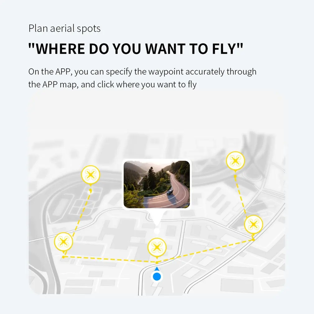 6. Летающий путь. Коснитесь желаемых путевых точек на карте полета, и Дрон будет летать от путевой точки до путевой точки.