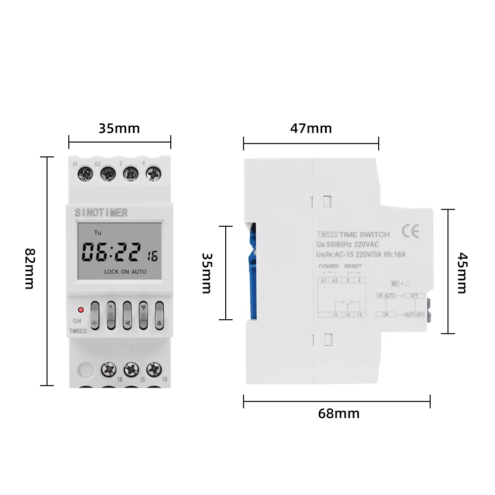 Особенности:1. Умные Настройки: автоматическое переключение источника питания, сбой питания не требуется сброс!2. Контроль времени: кратчайший срок может контролироваться в течение 1 секунды, до 168 часов!3. Управление сердцем: может регулярно контролировать все точечные устройства, такие как свет, электрические приборы, светодиодный экран!4. Длительное Время ожидания: функция длительного ожидания обычно может длиться 2 года без внешнего источника питания.5. Автоматическая блокировка экрана: функция автоматического блокировки экрана и Функция выключения экрана!6,16 комплектов настроек: можно настроить 16 раз в день и 16 раз в день, что можно использовать вручную и автоматически.7. Умный чип: функции добавления и вычитания, переключатель «+» и «-» по желанию. Преимущество:1. Большой ЖК-дисплей, ядро использует Многофункциональный микрокомпьютерный чипМожно установить 2,16 групп временных периодов, и время переключения может быть циклическим днем или неделей. Самый длинный контроль составляет 168 часов, а самый короткий контроль-1 секунду.3. Программа настройки не зависит от сбоя питания, и время установки может быть нормально отображено и запоминается при выключении питания.4. Может быть установлен в распределительной коробке, ширина 2P 36 мм рельсовая установка Примечания:1. Пожалуйста, нажмите синюю ограничительную деталь в кнопке продукта перед работой.2. С переключателем в линию можно связаться только с источником питания ac220в, не подключайте к другому источнику питания.3. Нажмите кнопку «+»,-«-» долгое время можно быстро установить.4. Если не удается достичь функции автоматического управления, пожалуйста, проверьте «Авто» показать в правом нижнем углу экрана.5. Внутренняя батарея обеспечивает только ЖК-дисплей и настройку, такие как A1,A2 терминесцентная вспомогательная мощность пропущена. Он не может управлять выходом реле.6. Если есть ненормальная ситуация в продукте, короткий 3,4 терминал для сброса. После процедуры сброса, пожалуйста, перезагрузите снова.7. Когда срок службы продукта закончился, чтобы защитить нашу окружающую среду, пожалуйста, выполните переработку тех компонентов, которые могут быть использованы снова, и убедитесь, что эти отходы и бесполезные детали правильно и безопасно утилизированы.8. Нажмите кнопку "R" в течение 3 секунд, чтобы включить/выключить ЖК-дисплей. Посылка включает в себя:*Таймер TM622* Руководство на английском языке