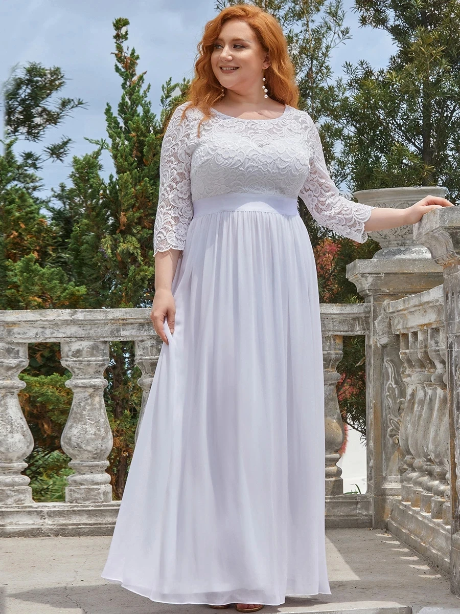 Кружевные платья подружки невесты размера плюс белого цвета с длинным кружевным рукавом и круглым вырезом, ткань с низкой эластичностью для подружки невесты 8XLRobe