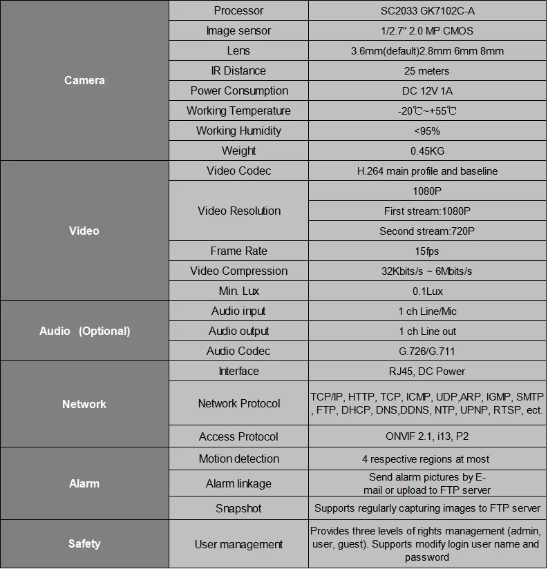 1.HJT-GK2MP01-W 1080P камера * 1 2. Руководство * 1 3. Водонепроницаемый свет * 1 4. Винтовая упаковка * 1