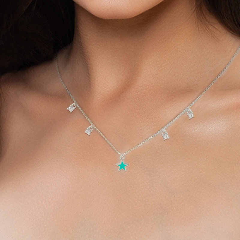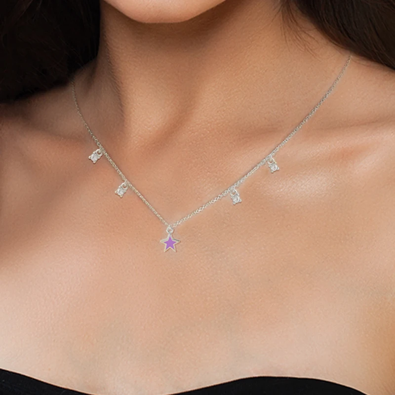 Ожерелье женское из серебра 925 пробы, с эмалью, фиолетового и зеленого цветов