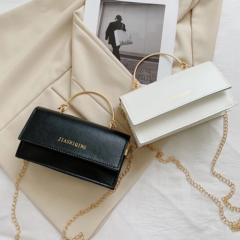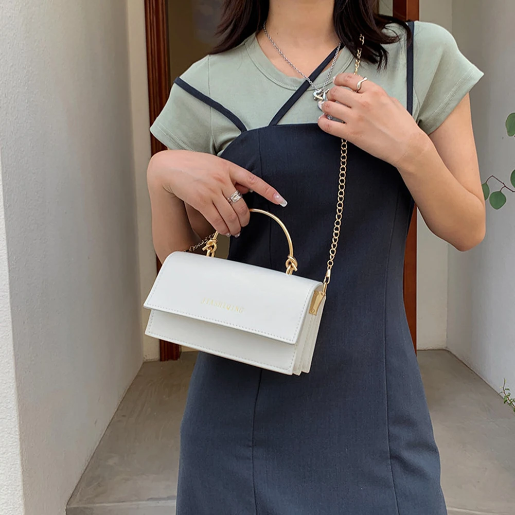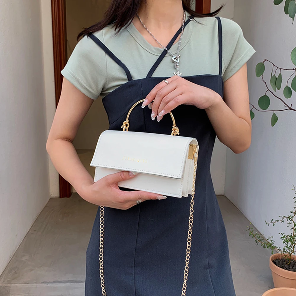 Модная женская сумка через плечо из искусственной кожи с цепочкой, Женская Повседневная однотонная маленькая сумочка с ручкой сверху