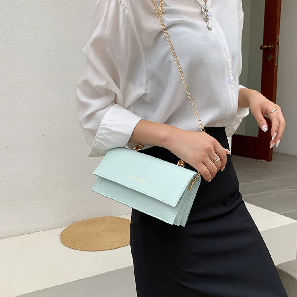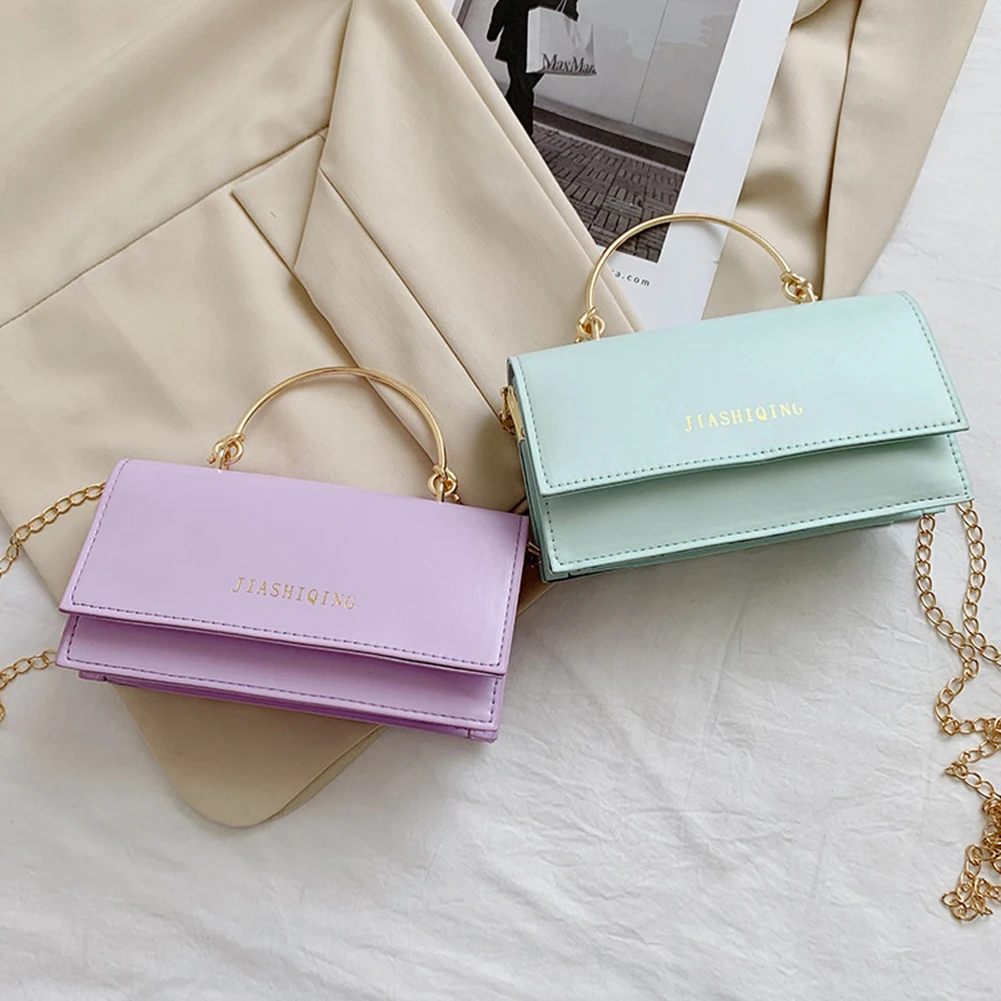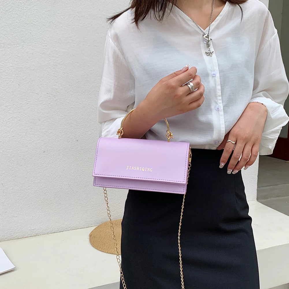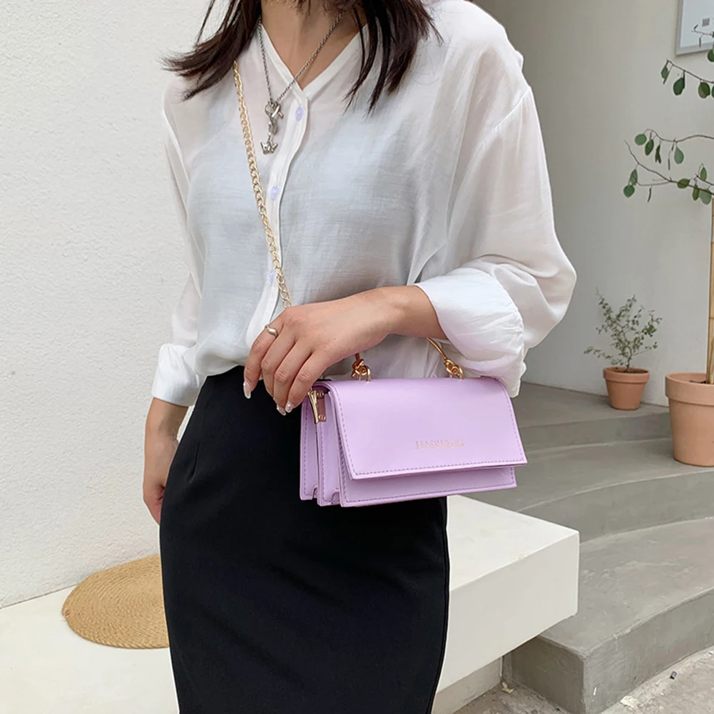 Модная женская сумка через плечо из искусственной кожи с цепочкой, Женская Повседневная однотонная маленькая сумочка с ручкой сверху