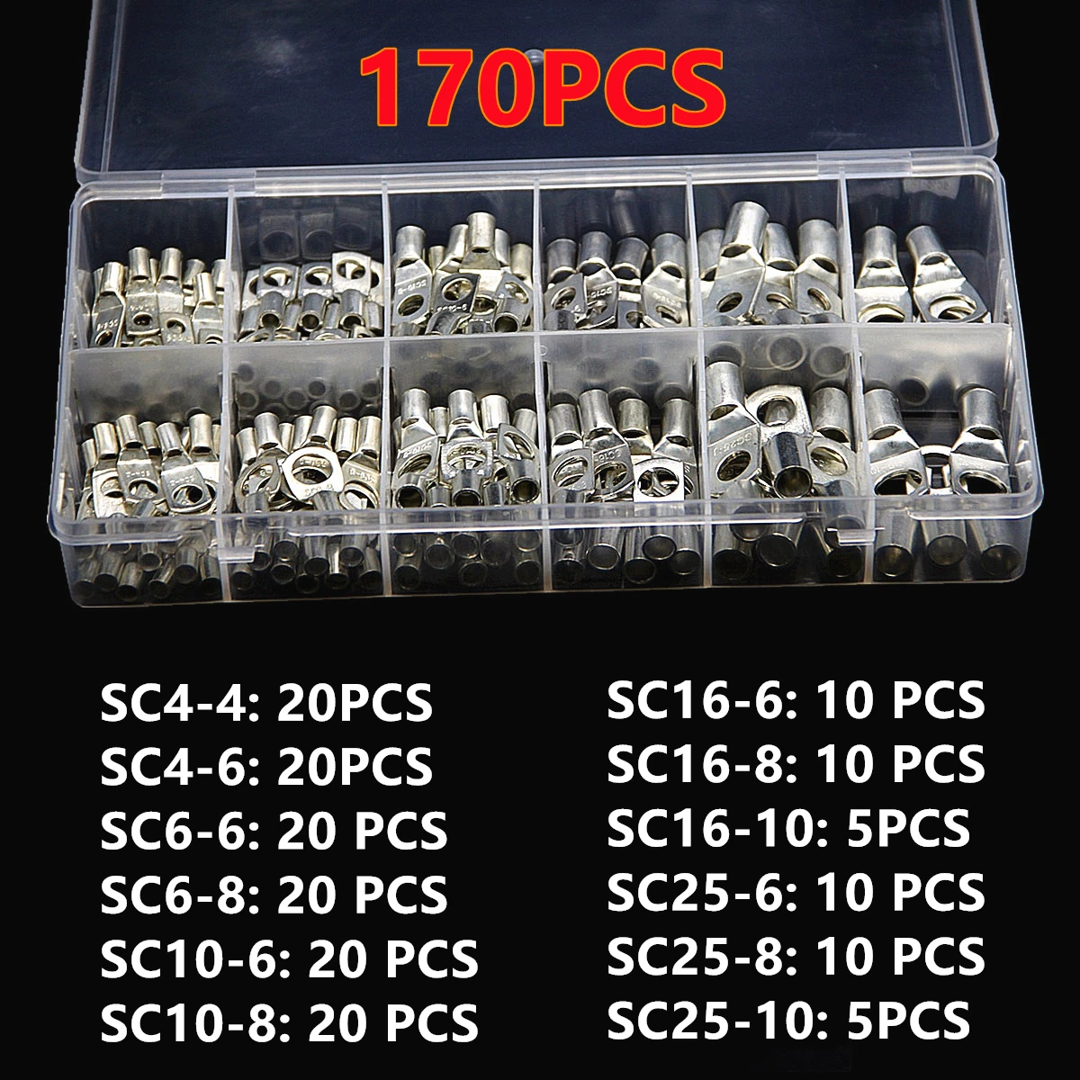 17010060 шт. в ассортименте, голая обжимная Клемма SC, зажимные кольца, электрический провод, соединяемые медные наконечники, набор клемм для сращивания кабеля