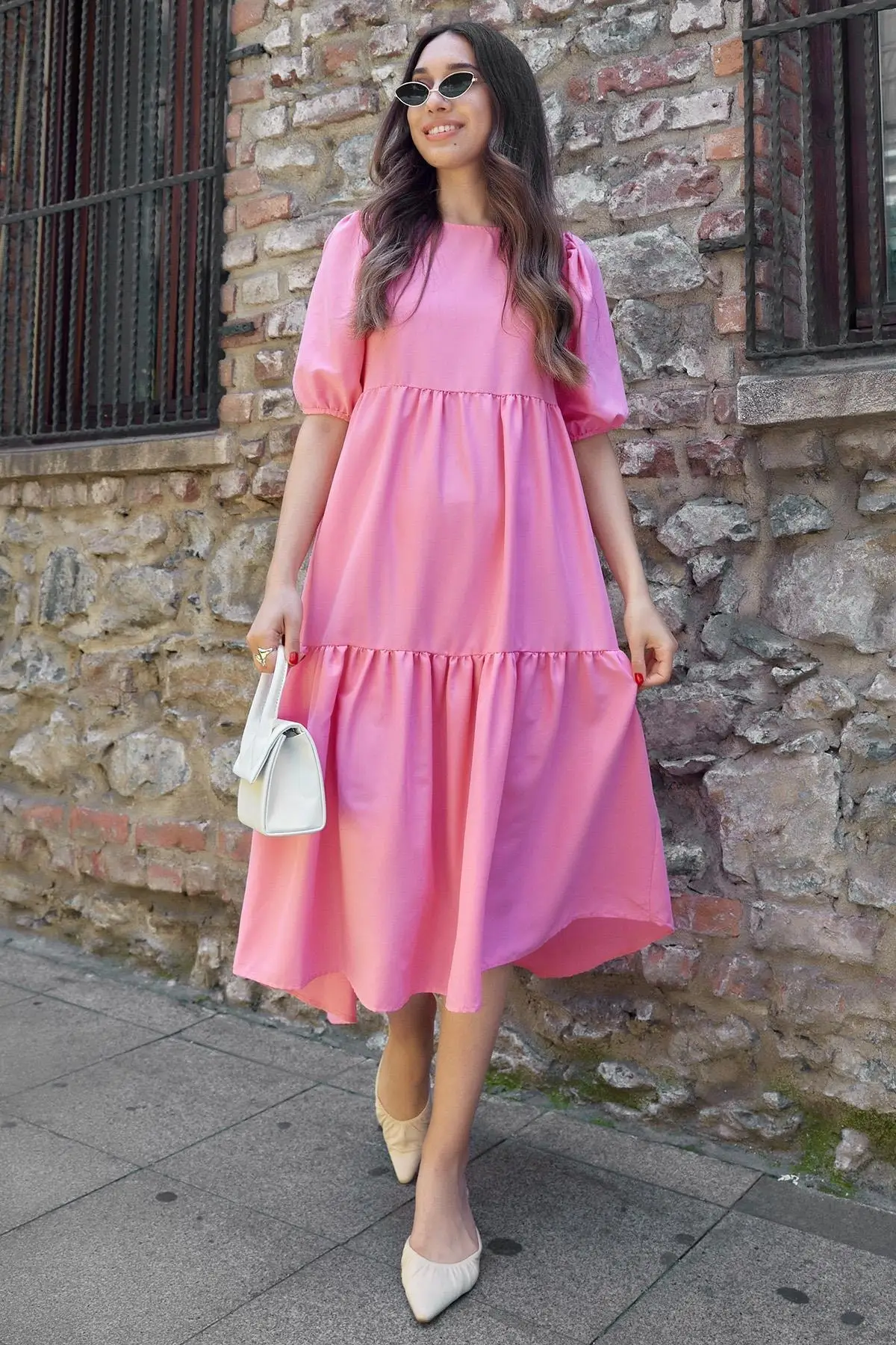Платье из поплина с рукавом-шариком и горлом-розовое платье, одежда