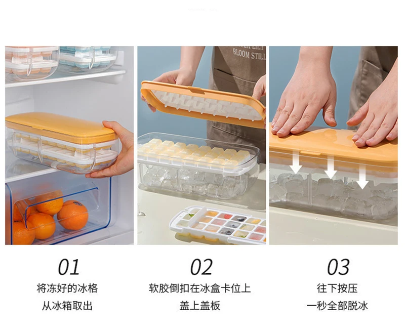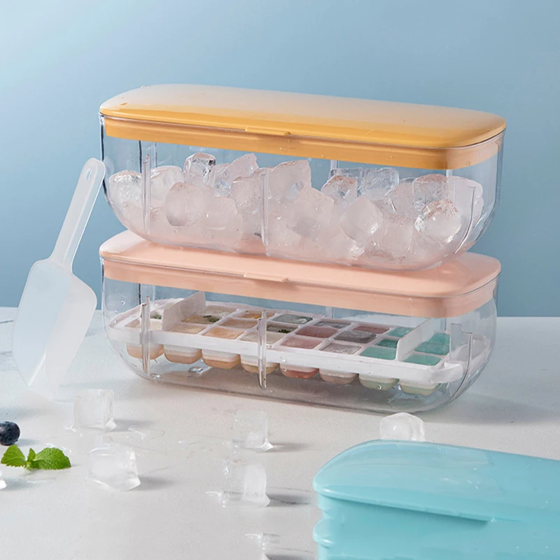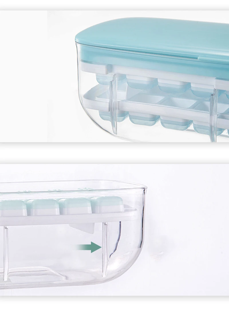 Крышка ледяного лотка сделана с прозрачной крышкой, чтобы показать его содержимое. Вода не проливается сверху, а другие запахи не впитываются в лед.