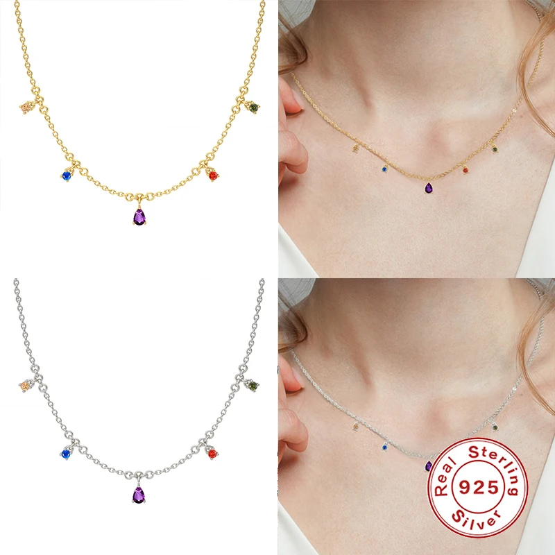 Ожерелье женское из серебра 925 пробы с радужным цирконом, 18 К