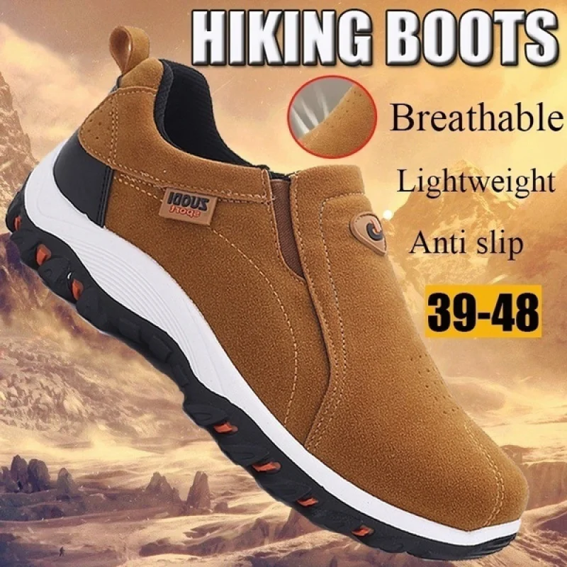 Мужские кожаные туфли с плюшевой подкладкой, Классическая водонепроницаемая обувь для альпинизма, нескользящая подошва, легкая Уличная обувь
