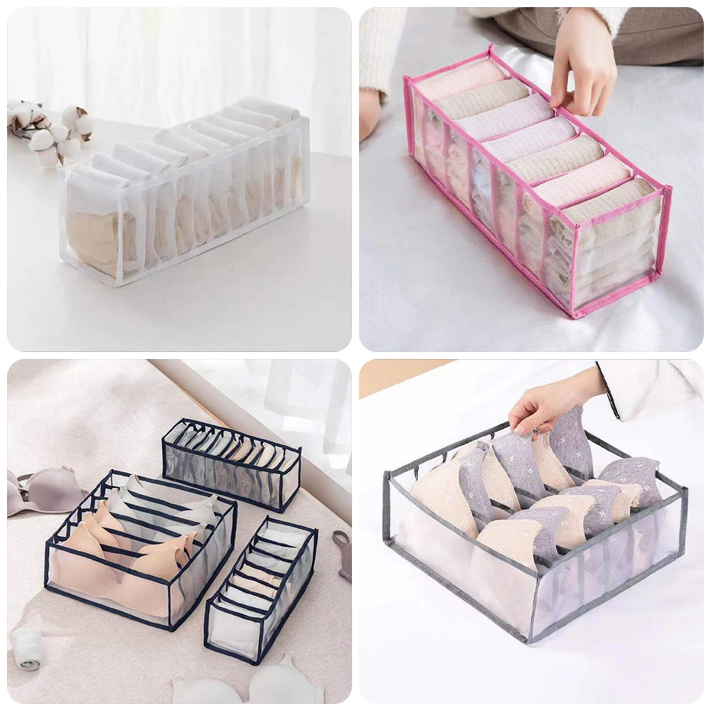 Органайзер для нижнего белья, бюстгальтеров, носков, шарфов, коробка для хранения, нейлоновая сетка, Складные портативные органайзеры, ящик, органайзер для шкафа, разноцветный