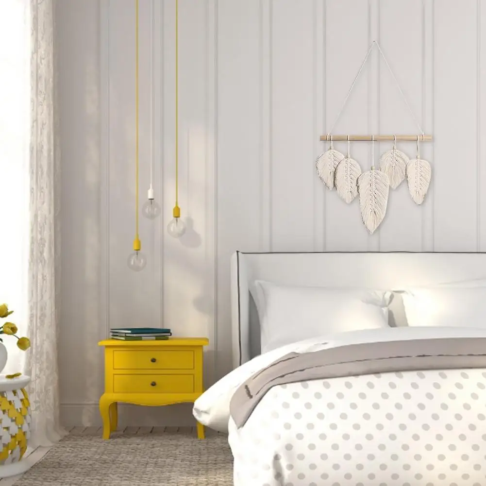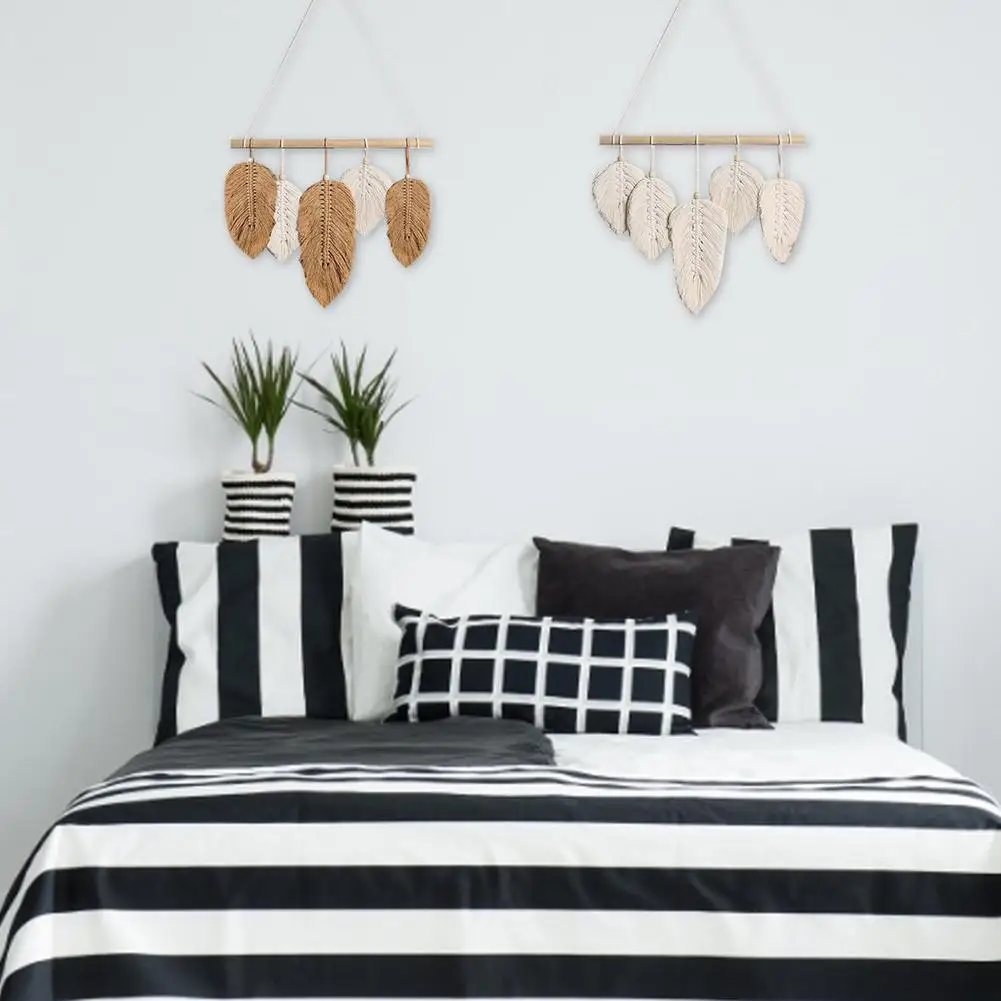 Макраме настенная подвеска ручной работы перо хлопчатобумажные тканые листья для гостиной подвесные висячие двери в стиле бохо Декор настенный гобелен