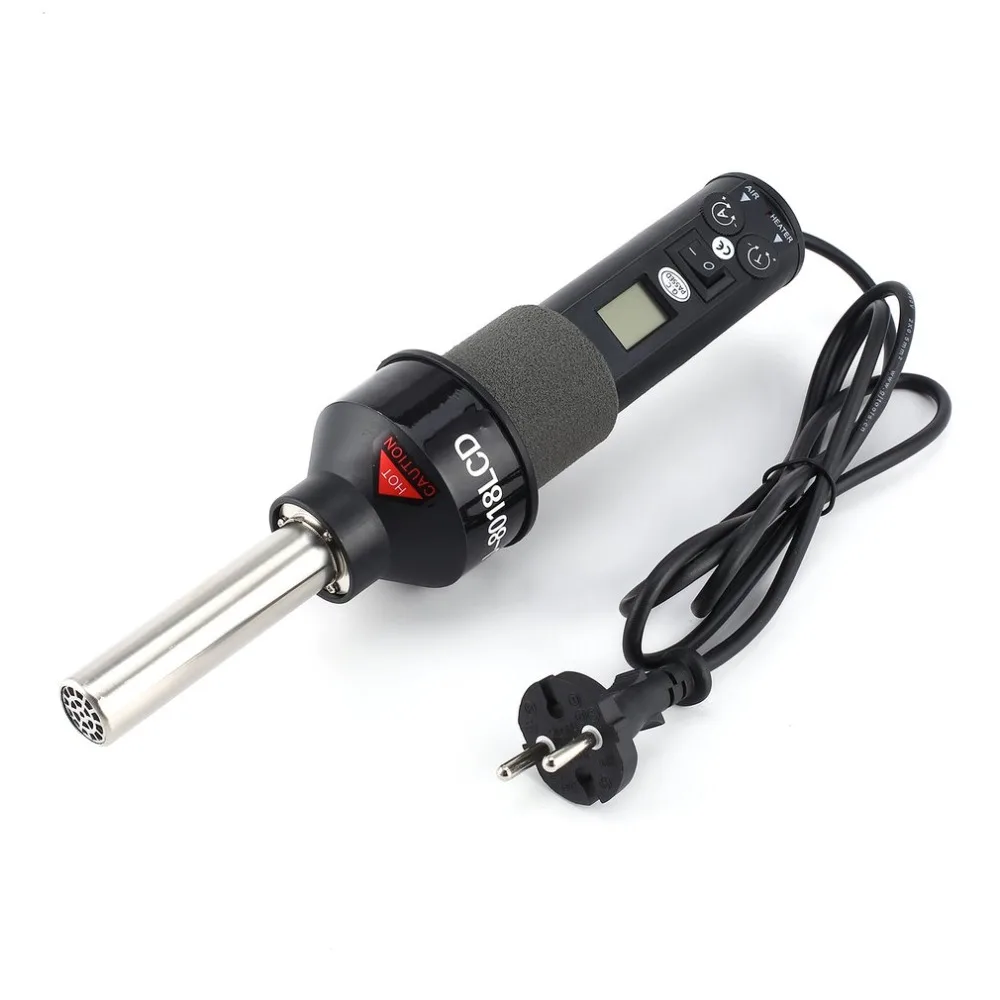 Особенности:1. Легко настроить оператора для точного контроля температуры и объема воздуха.2. Нет необходимости в паяльной станции, просто подключите и играйте, прост в использовании.3. ЖК-экран отображает температуру.4. Износостойкий, устойчивый к коррозии, длительный срок службы.5. Изделие отлично подходит для зачистки краски, смягчения сварных швов, изгиба пластиковых труб, размораживания пищевых продуктов и т. д.Описание:1. Соответственно Контролируйте температуру и объем воздуха.2. Портативность и контроль температуры.3. Незаменимые инструменты не только для любителей радио, но и для профессионалов.Характеристики:Модель: GT-8018LCDЦвет: черныйТип вилки: ЕСНоминальное напряжение: 220 ВМощность: 450 ВтМатериалы: пластик и железоРазмер изделия: 293x70x7 0 мм/11.54x2.76x2.76inВес изделия: 352 г/12,42 унцийИнформация о посылка:Размер посылка: 320x125x9 5 мм/12.60x4.92x3.74inПосылка Вес: 572 г/1.26lbПосылка с общей коробкойПосылка:1x220V пистолет горячего воздуха4 x сопло1 x кронштейн