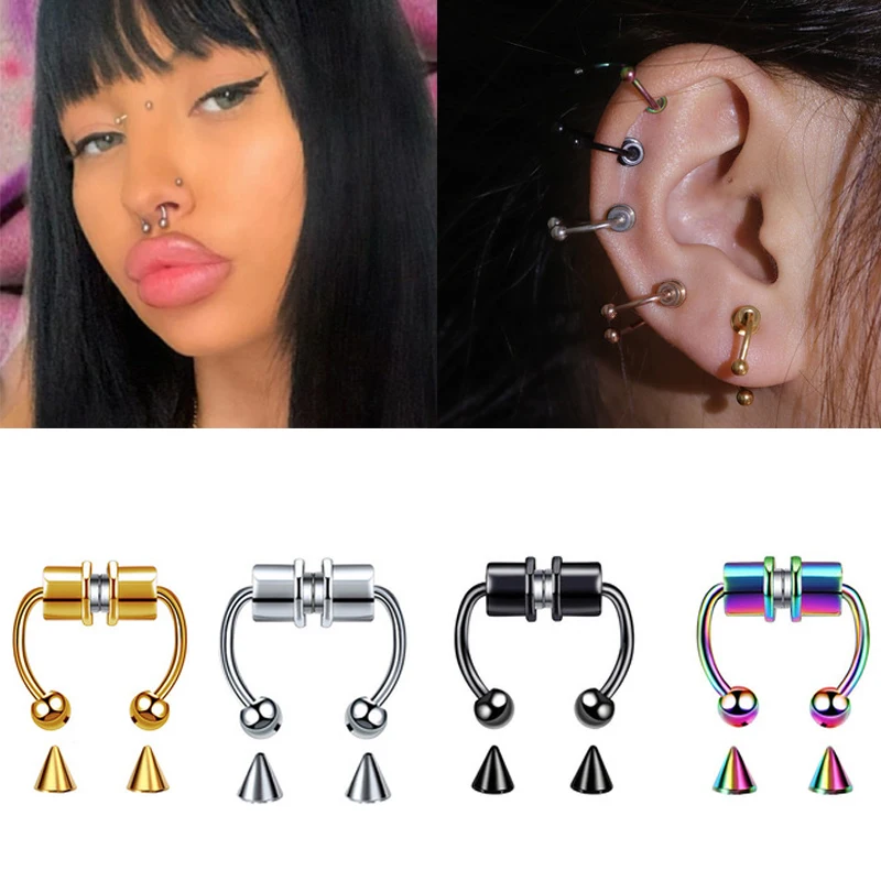 Кольцо для имитации пирсинга носа, магнитное кольцо в форме подковы для носовой и уха, без пирсинга, готическое Ювелирное Украшение, 1 шт.