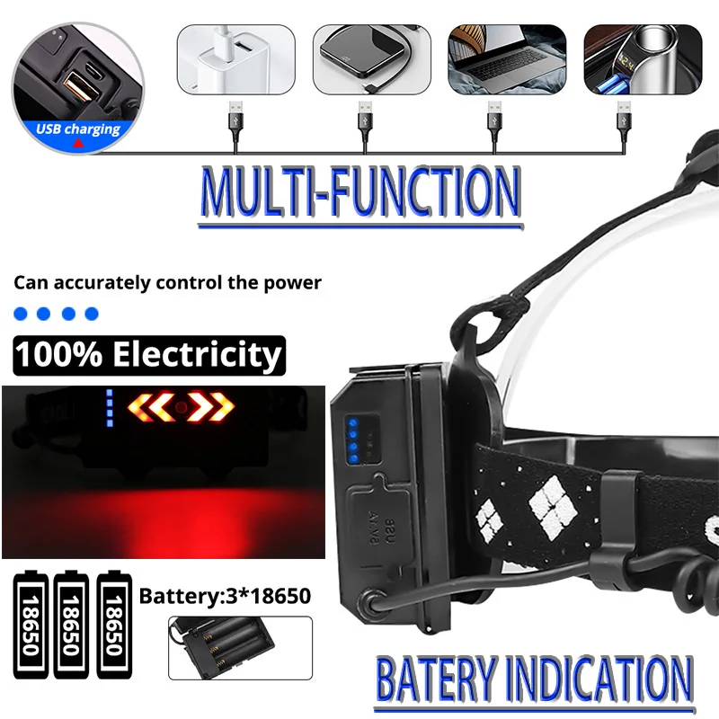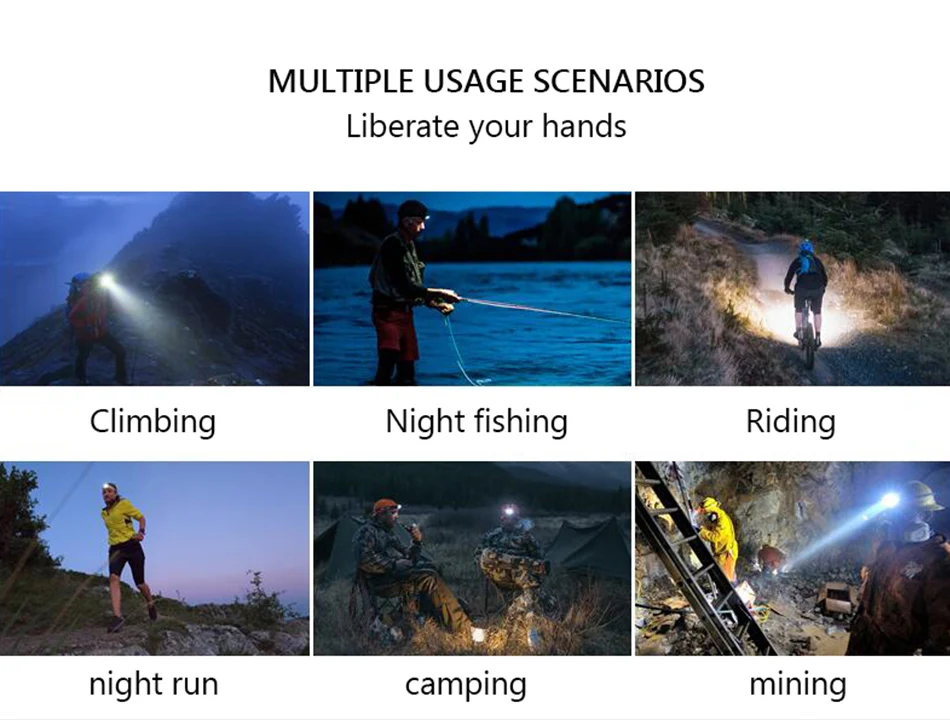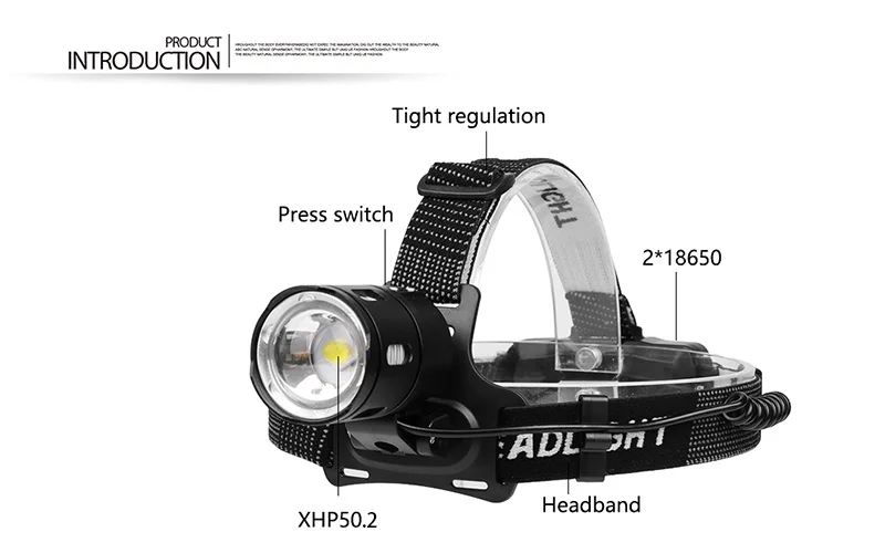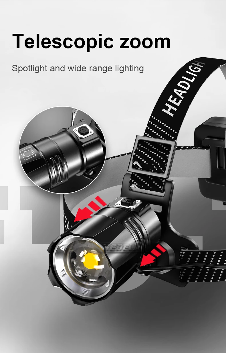1. Телескопический зум, поддержка наклона входного и выходного угла 90 °, освещение ближнего света2. Резная технология обработки, функция отображения мощности, настраиваемый предупреждающий светильник, синий индикатор заряда батареи и красный индикатор на задней части аккумуляторной коробки-хорошее предупреждение!3. С регулируемой эластичной повязкой на голову, легко надевать и снимать4. Микро USB зарядка, вход и выход(Для зарядки мобильных телефонов)5. Класс водонепроницаемости достигает IPX-6, водонепроницаемый для жизни, но не может работать в воде6. Подходит для любителей спорта на открытом воздухе для активного отдыха, например, охоты, велоспорта, альпинизма и кемпинга.
