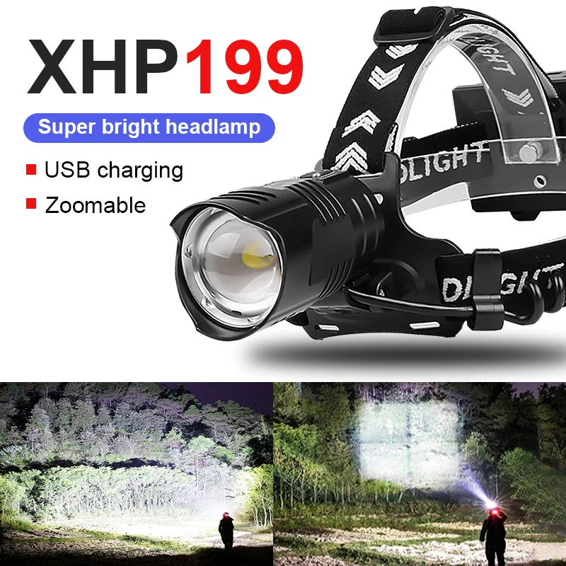 Новейший Мощный светодиодный налобный фонарь XHP199 18650 XHP90.2, светодиодный перезаряжаемый налобный фонарь USB XHP70, налобный фонарь для кемпинга