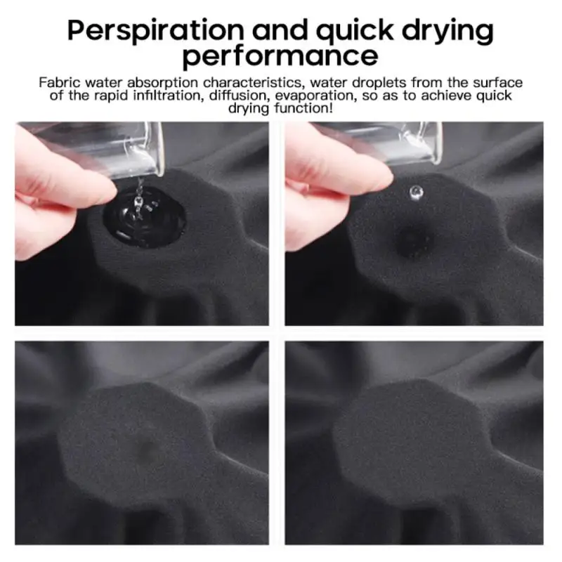 Ткань обладает водопоглощающими свойствами, и капли воды быстро проникают, рассеивают и испаряются с поверхности капель воды, тем самым реализуя функцию быстрой сушки!