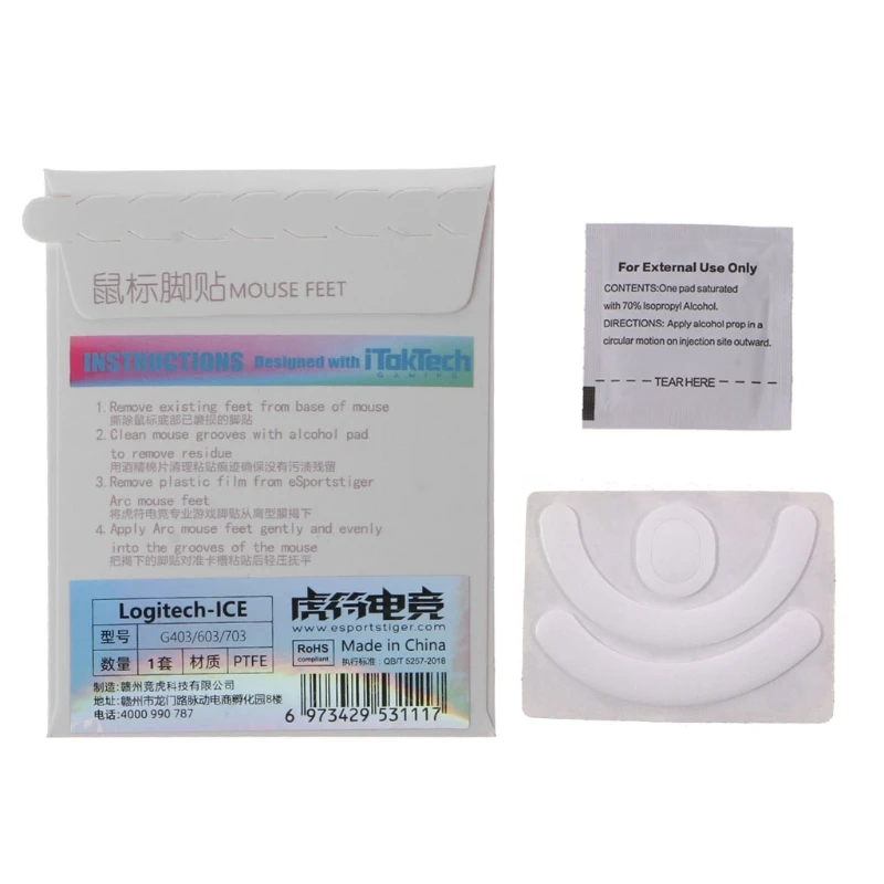 Этот продукт является заменяемой ногой мыши. После удаления оригинальной наклейки для ног мыши очистите нижнюю часть корпуса спиртовым хлопком, который прилагается в посылка, а затем вставьте Новые ножки мыши.