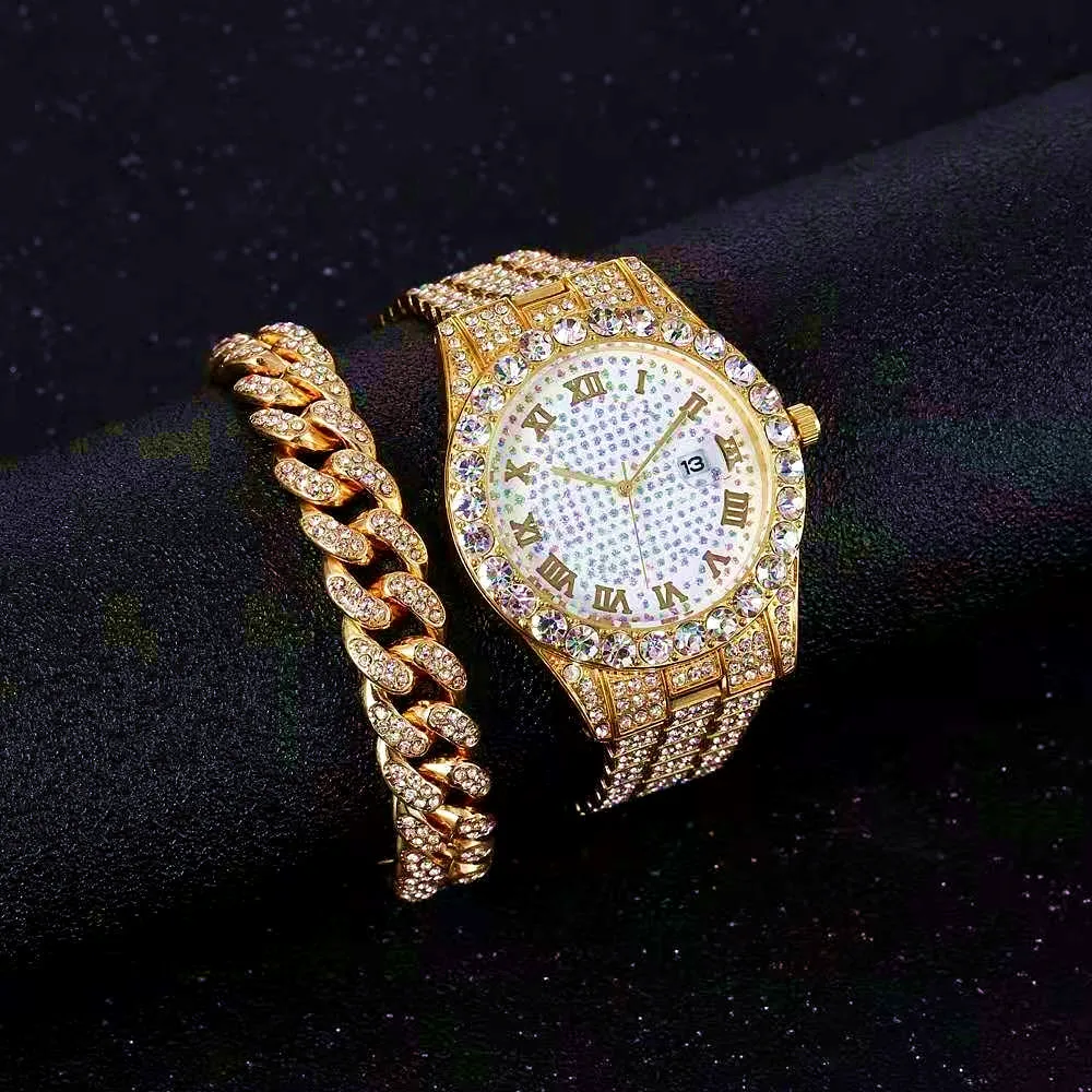 Мужские кварцевые часы в стиле хип-хоп, с браслетом и бриллиантами