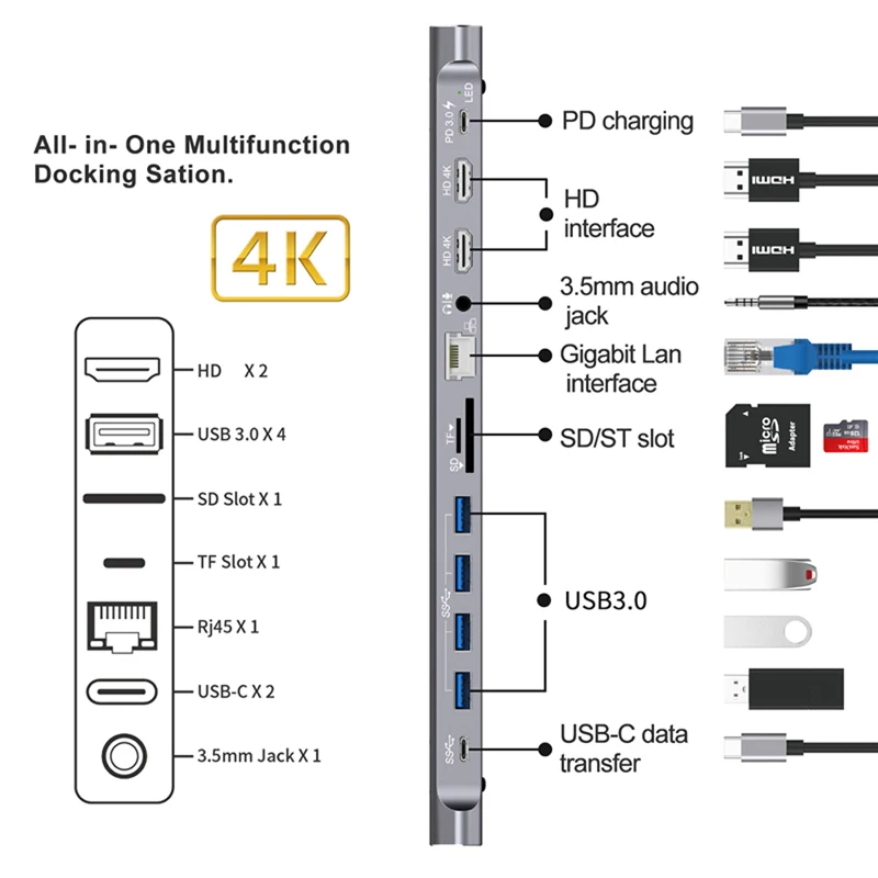 Feature 11USB 3.0 Type-C Hub To HDMI-Compatible Dock Adapter