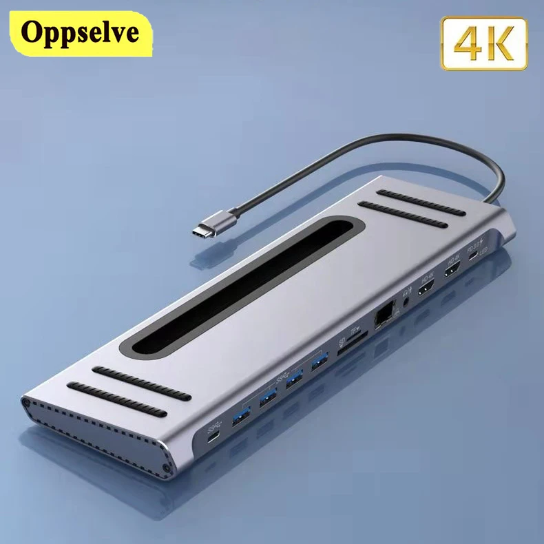 USB-концентратор Тип C адаптер 12 в 1 PD Быстрая зарядка HDMI-совместимый VGA RJ45 TFSD USB3.0 аудио разъем 3,5 мм сплиттер для MacBook Lenovo