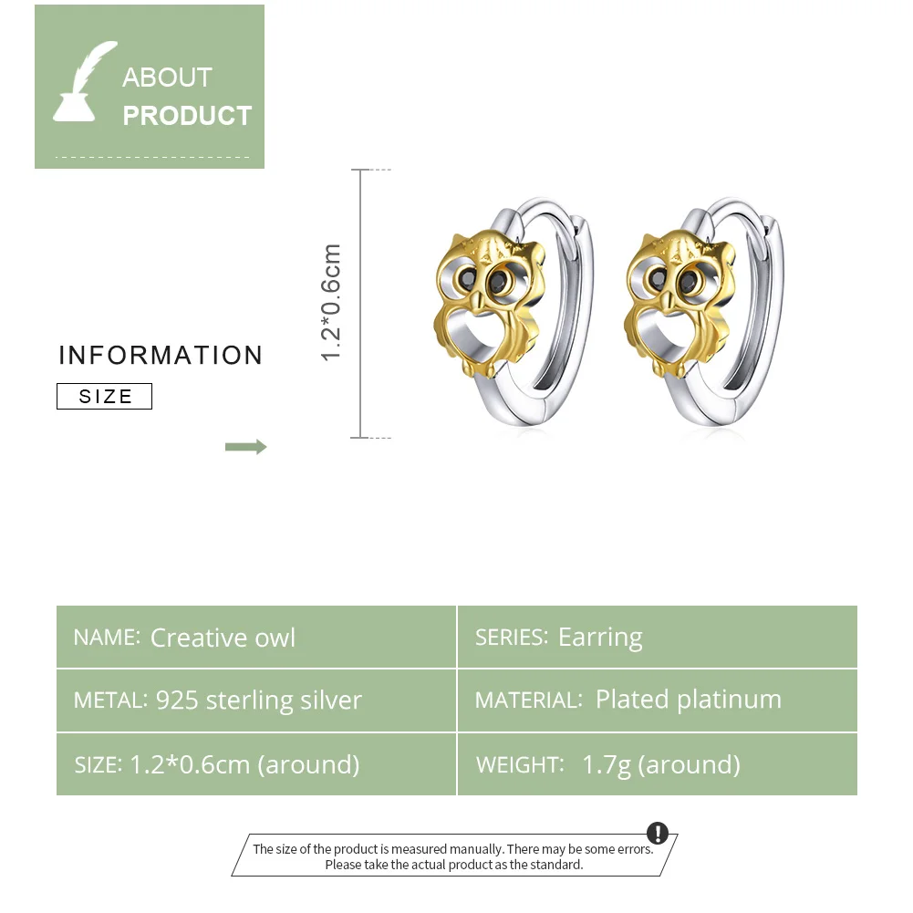 ❤【Описание】 в ушных пряжках используются элементы совы, которые являются новыми и уникальными; Гальваническая Платина и настоящее золото полны текстуры; Черный циркон точит глаза совы, которая полна творчества.❤【Спецификация 】размер: 1,2*0,6 см; Вес: 1 .7 г.❤【Материал: 】 Стерлинговое Серебро 925 пробы и паве с фианитами и платиновым покрытием и позолотой, эти серьги не имеют никеля, не имеют свинца, не имеют кадмия, гипоаллергенны. Гарантия качества, приятный для кожи, удобный и удобный в носке, не вредный для вашего здоровья.❤【На подарок 】 1 пара сережек и 1 шт. Изысканная Подарочная коробка, которая является идеальным подарком для мамы, дочки, правки, тети, сестер, друзей.❤【BAMOER YOU】 чтобы обеспечить ваше полное удовлетворение, любые вопросы о продукции BAMOER, просто не стесняйтесь обращаться к нам, мы постараемся сделать все возможное, чтобы помочь вам.