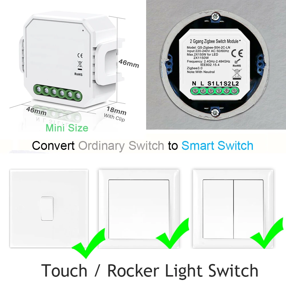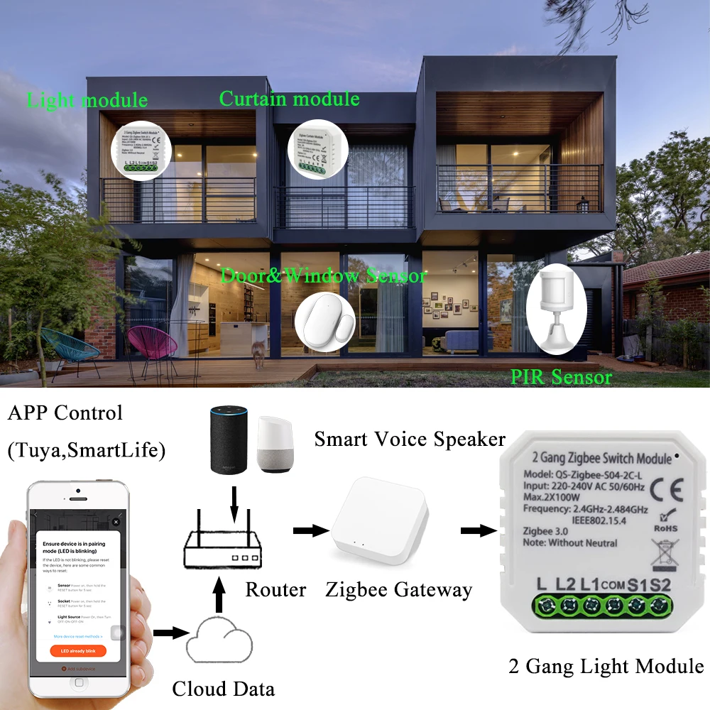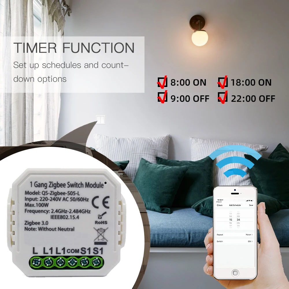 О модуле Zigbee светильник:Этот умный модуль Tuya ZigBee 3,0 разработан специально с протоколом ZigBee 3,0, совместим с Tuya ZigBee hub (также поддерживается SmartThings) для реализации всей связи вашего дома, действительно хорошая замена нестабильного Wi-Fi. Мини-размер, подходит для Великобритании/ЕС. Он также поддерживает 1way 2way(2 переключателя управления 1 светильник) Подключение. Голосовое управление, дистанционное управление с помощью приложения, работа с традиционным переключателем, функция времени, Семейный доступ, он мощный и полезный. Конечно, вам сначала нужен концентратор zigbee/шлюз. Вы также можете найти его в нашем магазине.