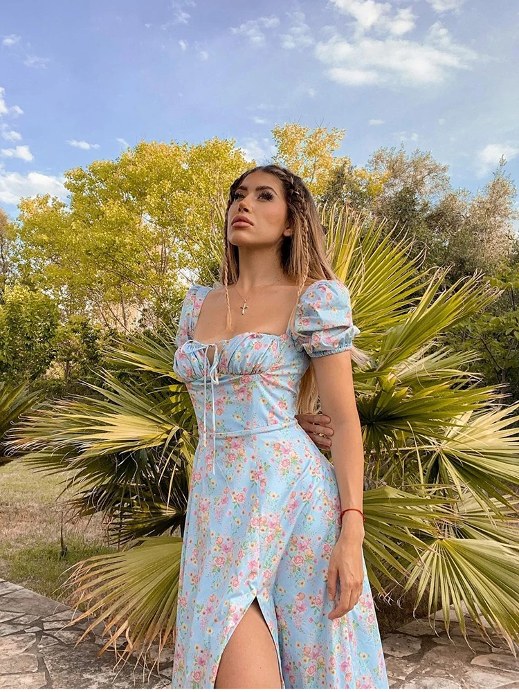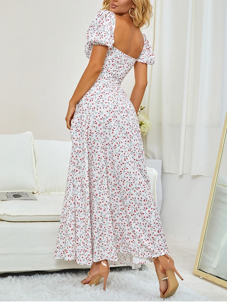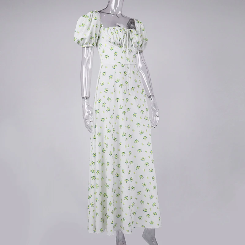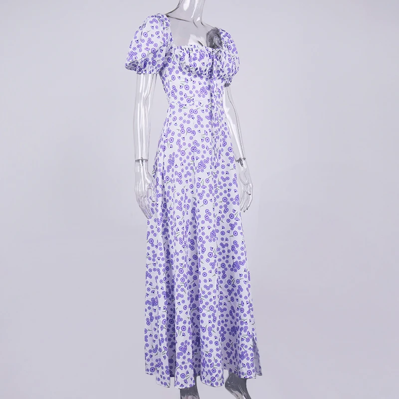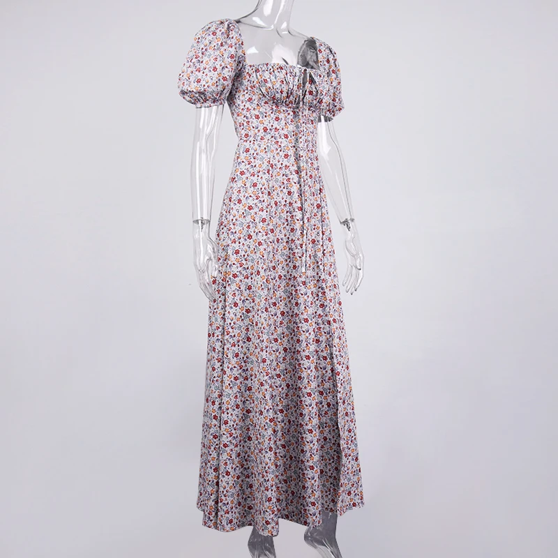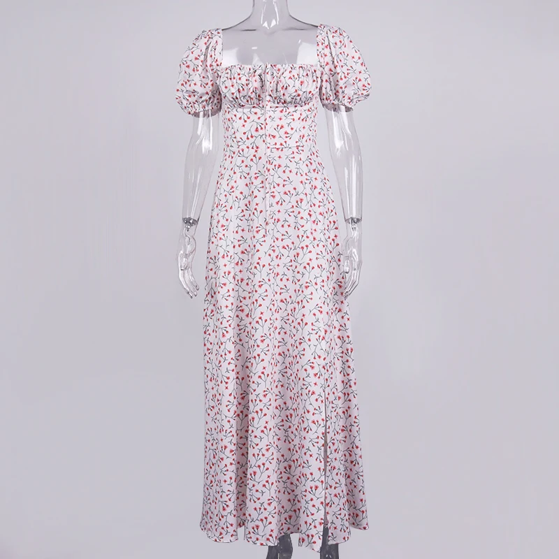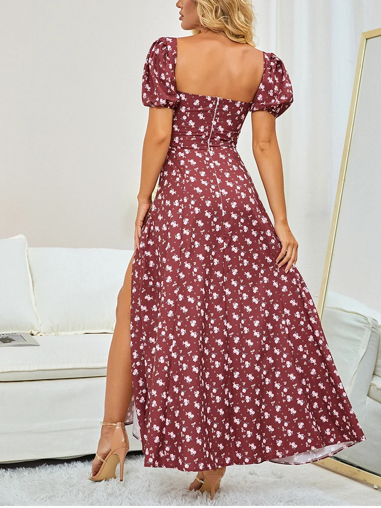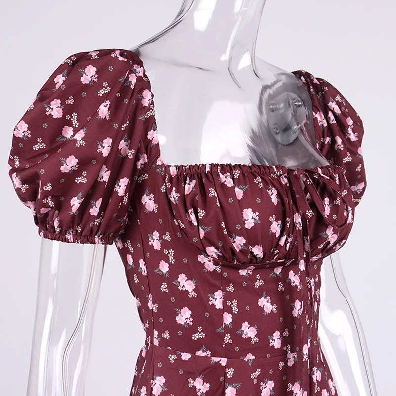 Женское платье с рукавами-фонариками NewAsia, длинное платье с цветочным принтом и разрезом сбоку, на молнии, с рюшами, милое летнее платье для женщин, 2021