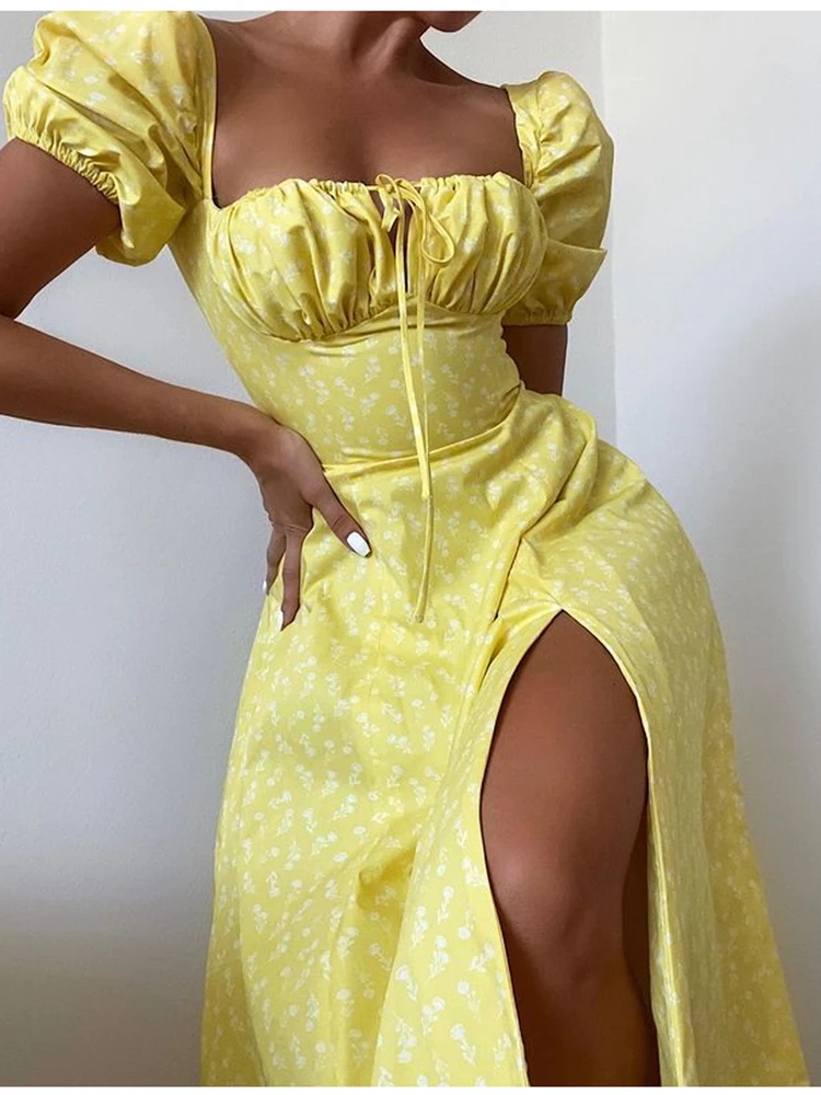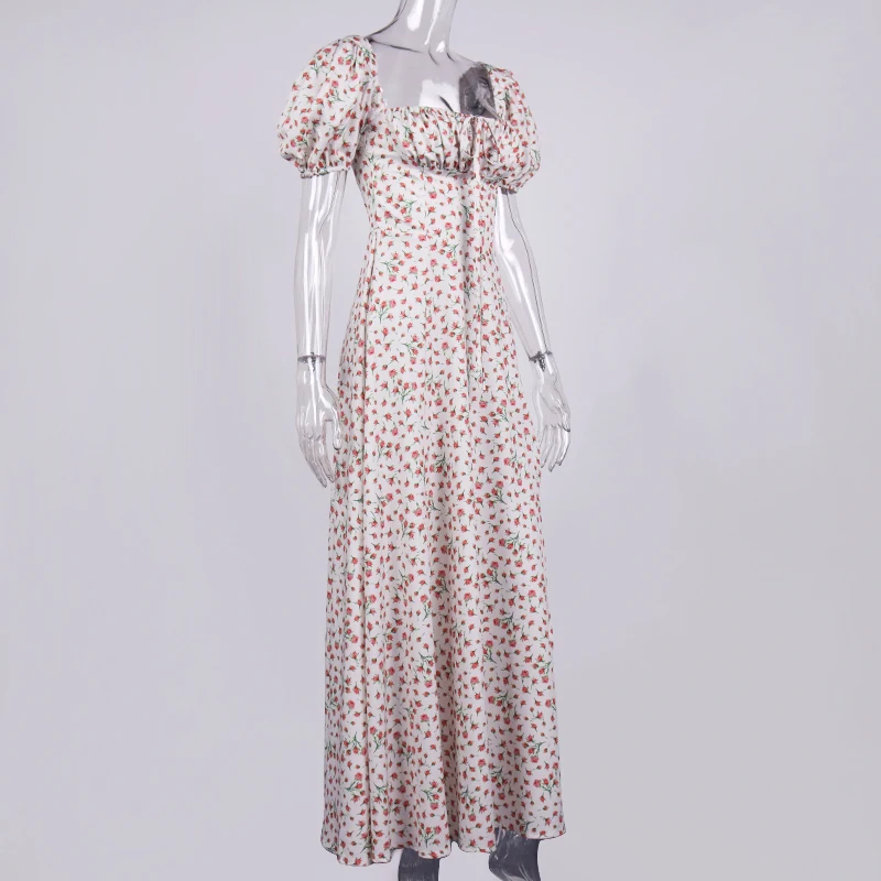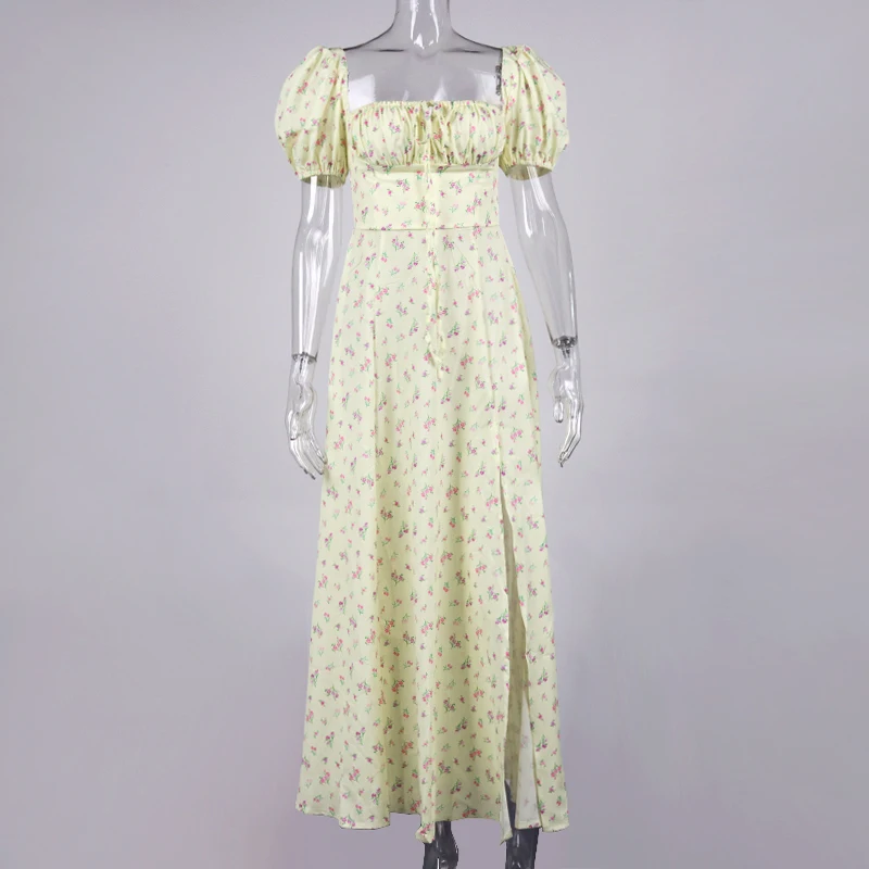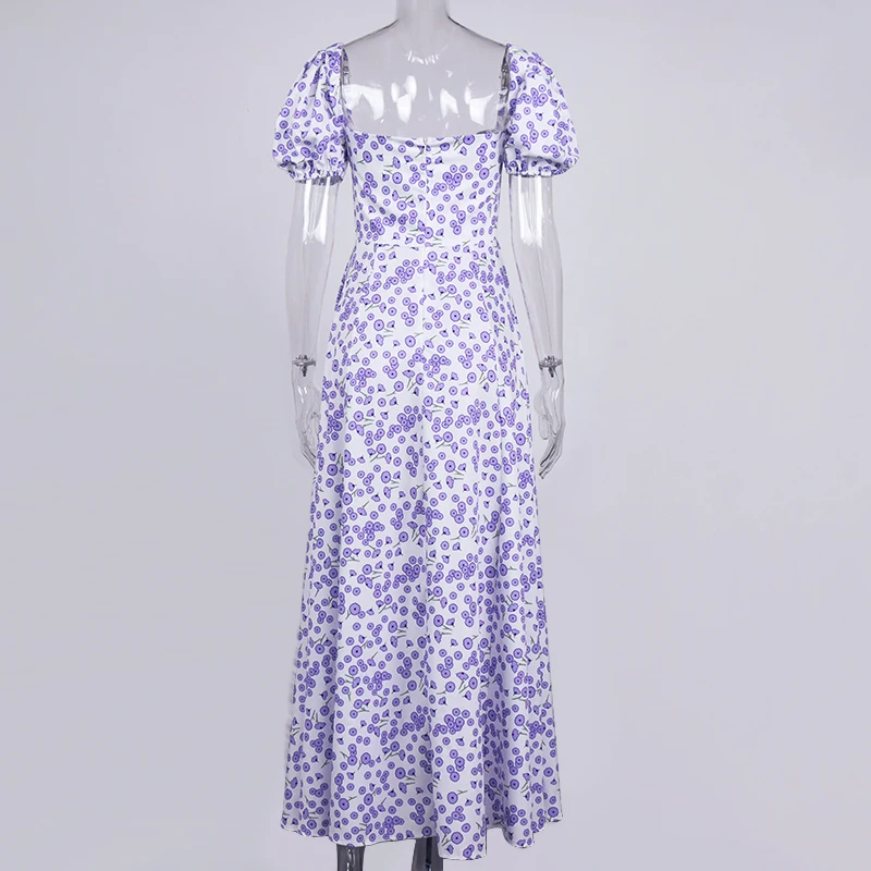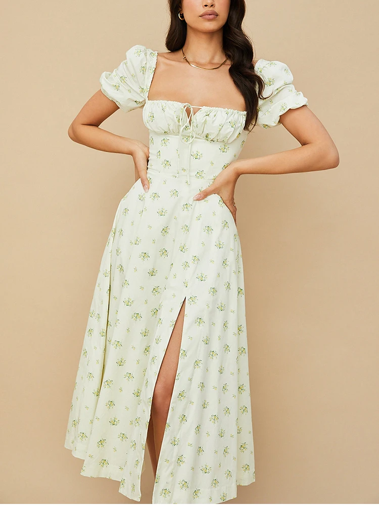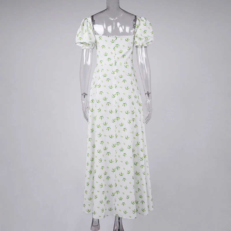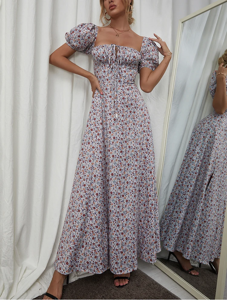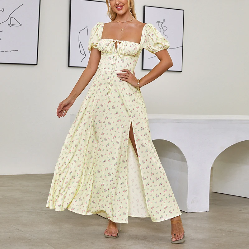 Женское платье с рукавами-фонариками NewAsia, длинное платье с цветочным принтом и разрезом сбоку, на молнии, с рюшами, милое летнее платье для женщин, 2021