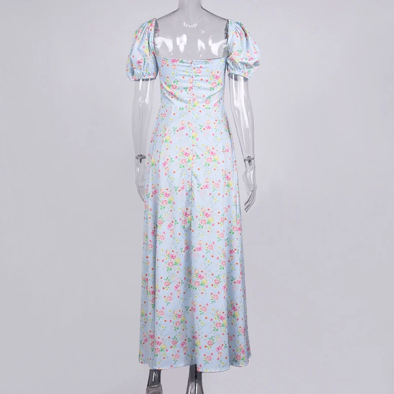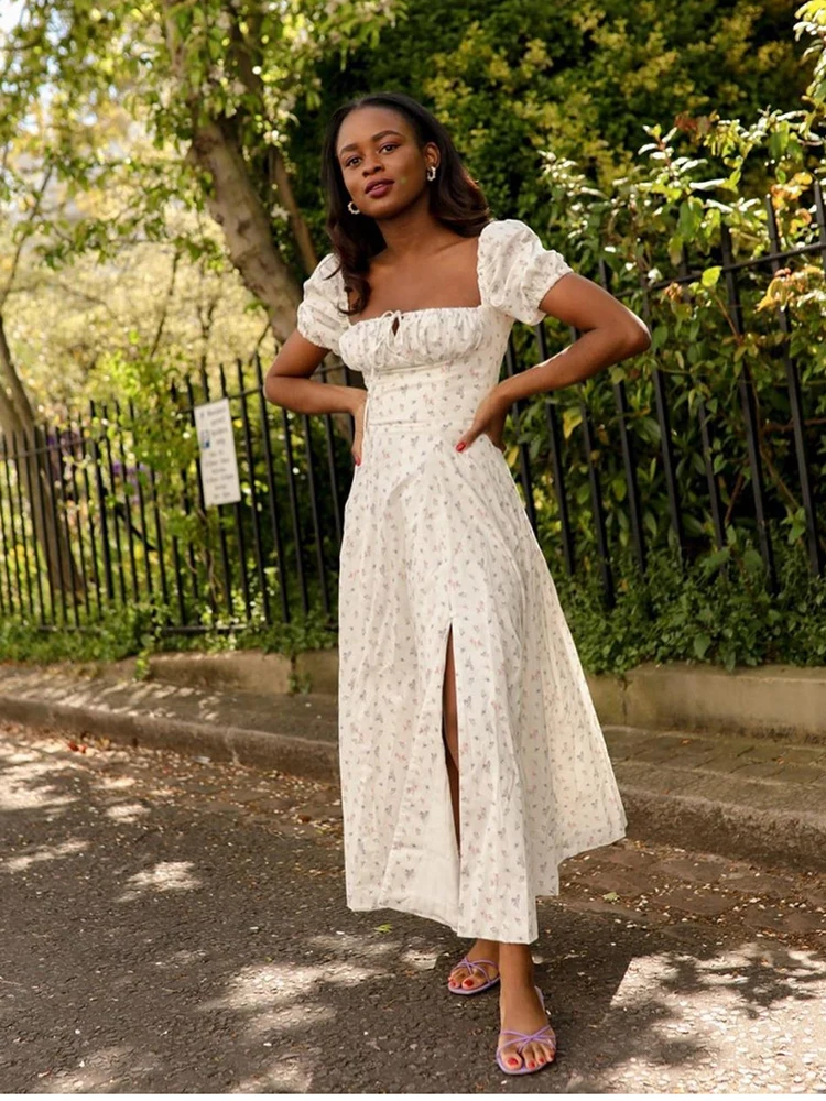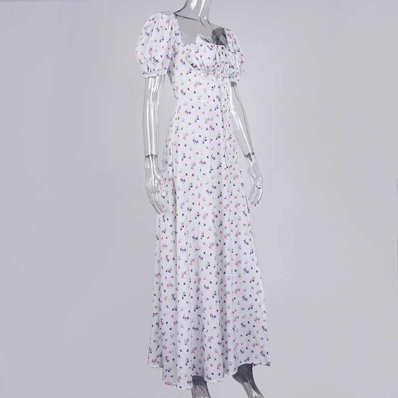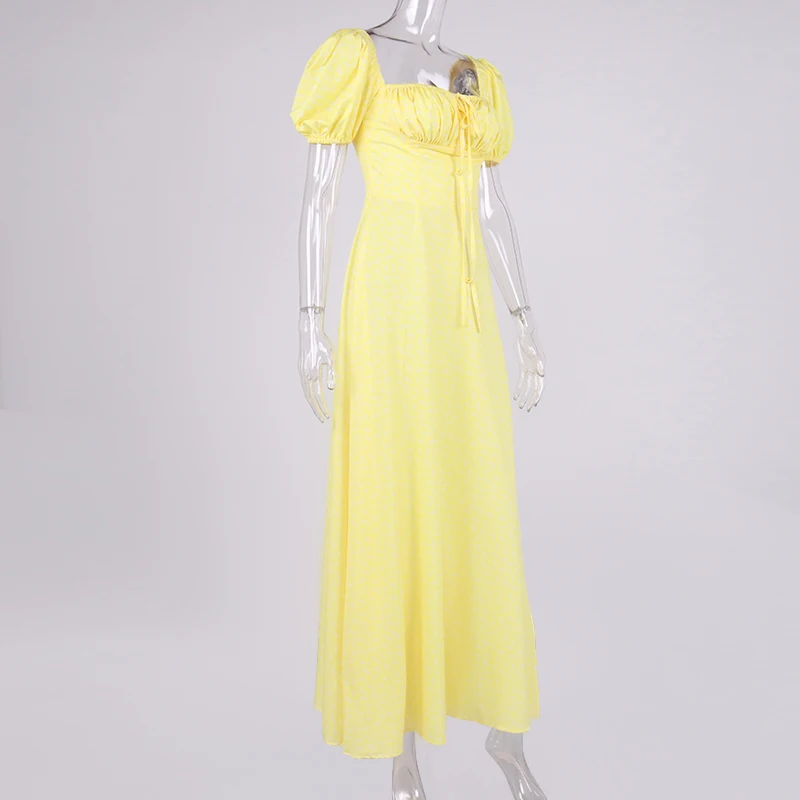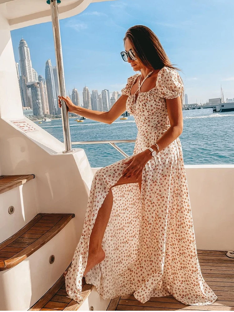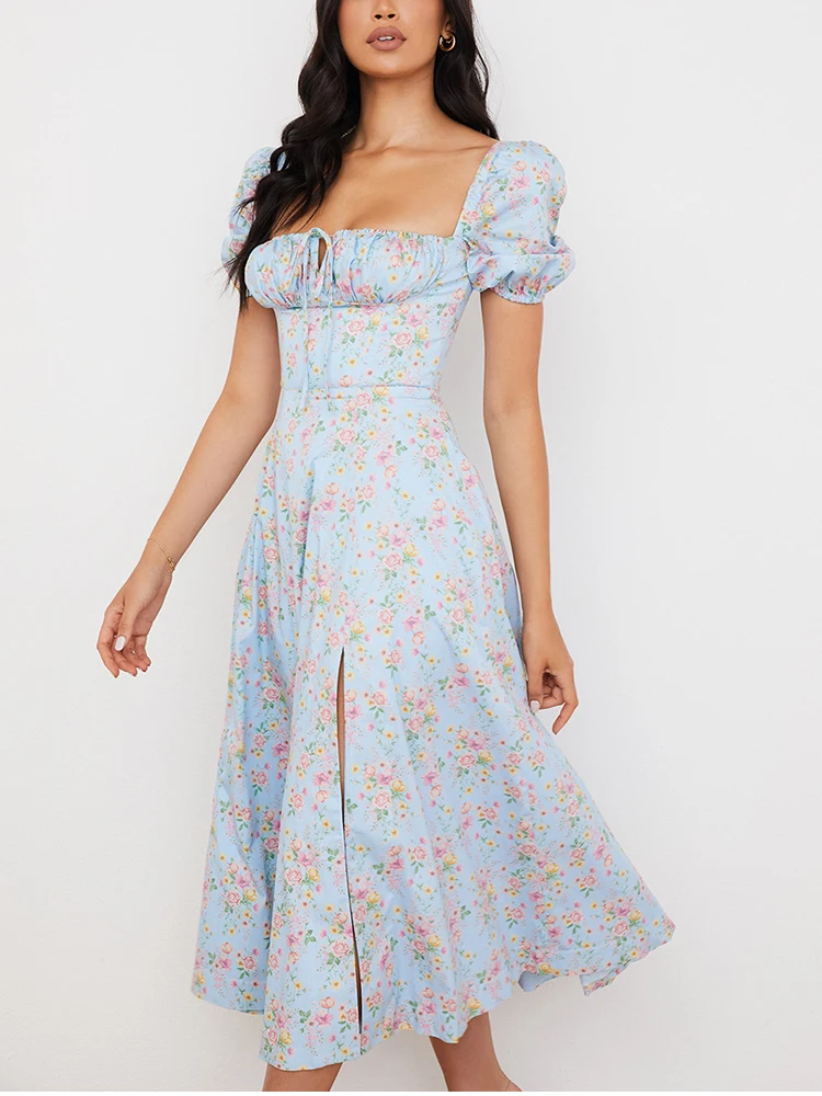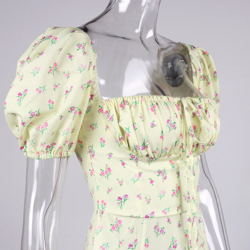 Женское платье с рукавами-фонариками NewAsia, длинное платье с цветочным принтом и разрезом сбоку, на молнии, с рюшами, милое летнее платье для женщин, 2021