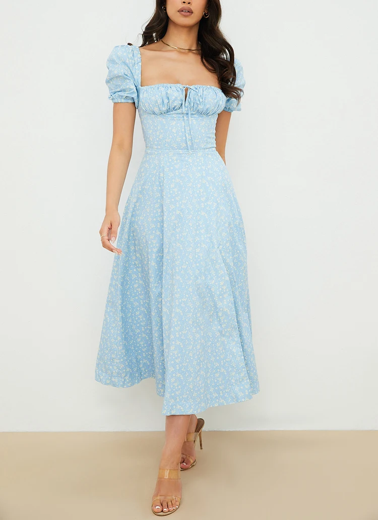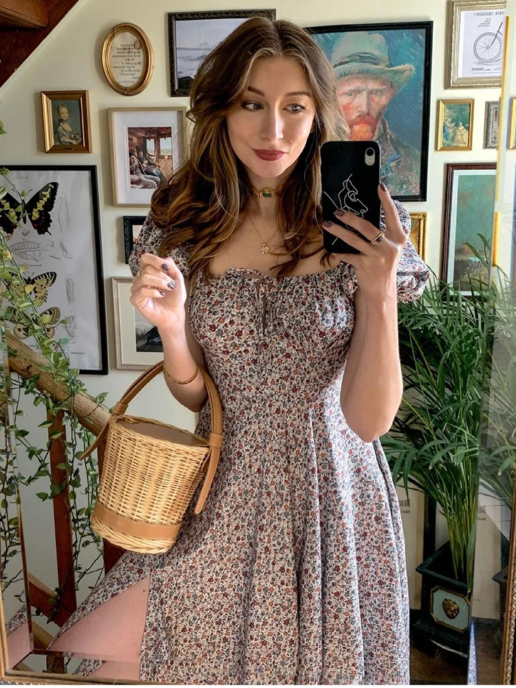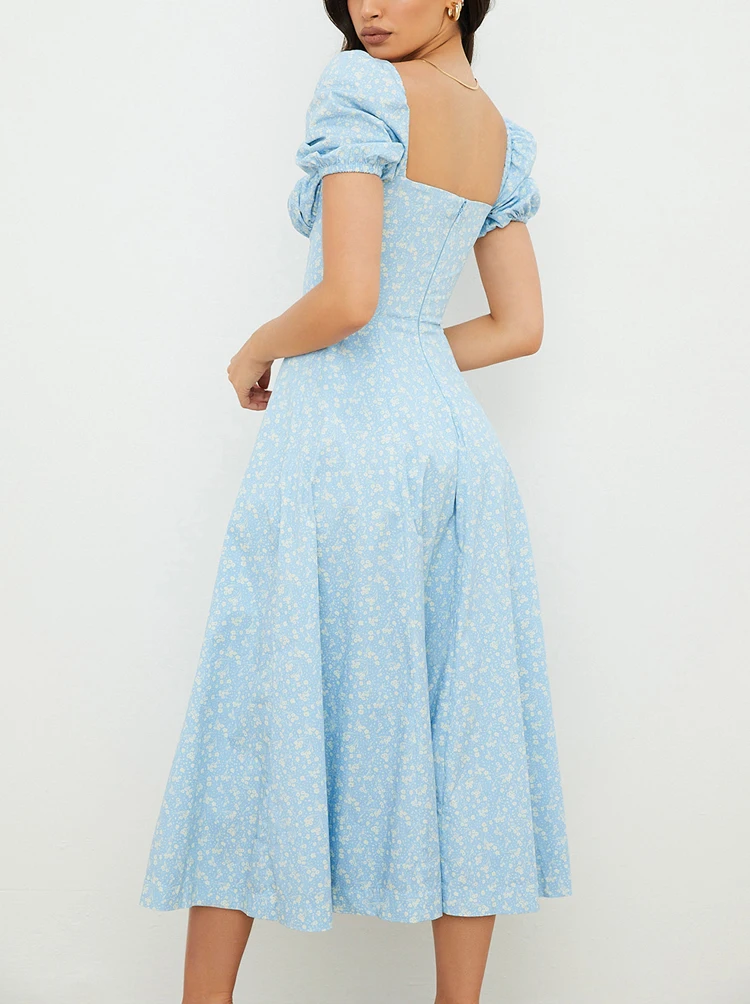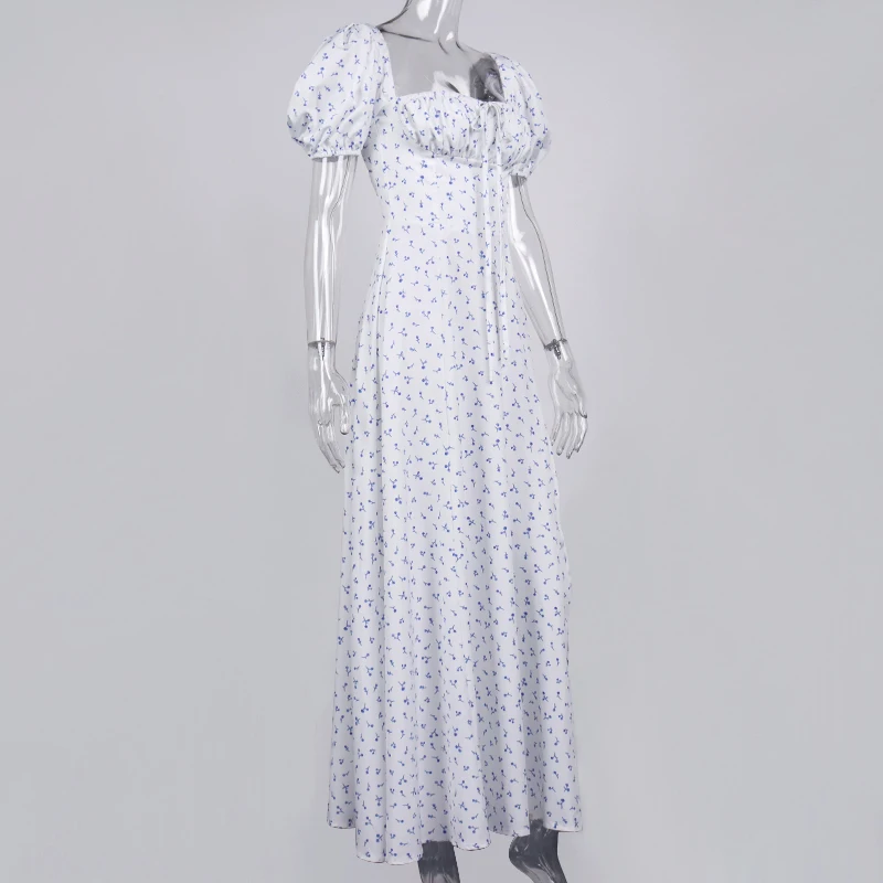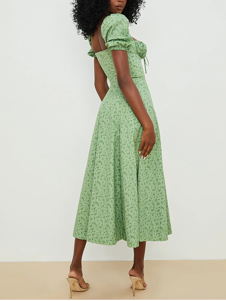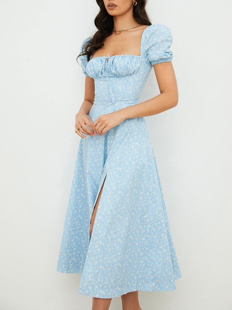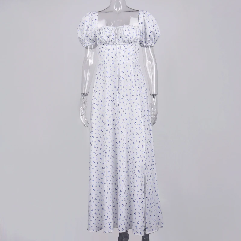 Женское платье с рукавами-фонариками NewAsia, длинное платье с цветочным принтом и разрезом сбоку, на молнии, с рюшами, милое летнее платье для женщин, 2021