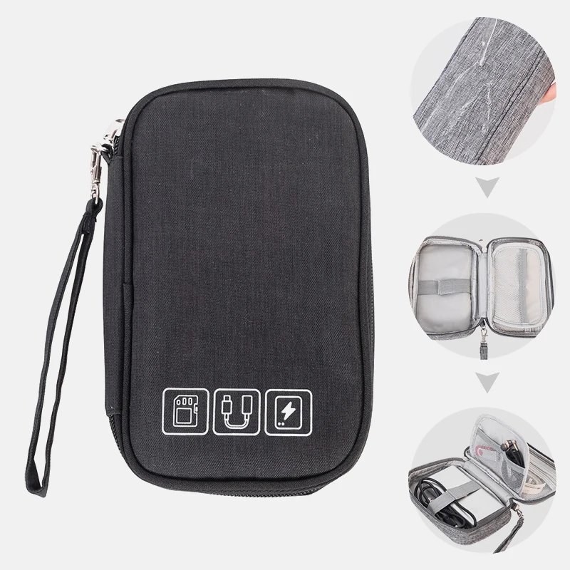 Портативный, практичный, водонепроницаемый и прочный;Большая емкость, банк питания магазина, мобильный телефон, гарнитура, кабель передачи данных и т. Д.;Сетчатый Чехол с изоляцией, Избегайте запутывания, использования большого пространства;Изысканный внешний вид, большая вместимость внутри, удобно носить с собой.