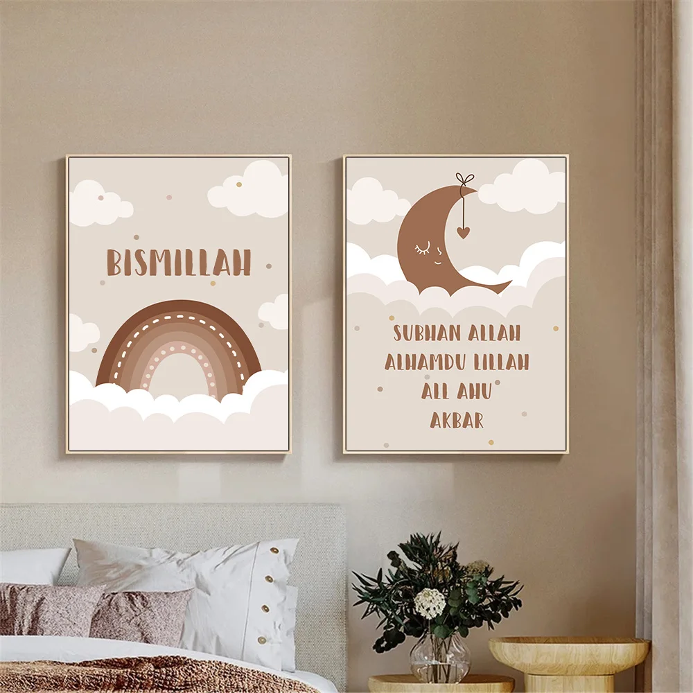 Мусульманские постеры для детской комнаты Bismillah, Картина на хол...